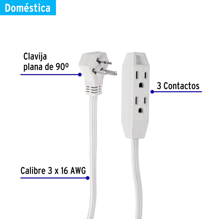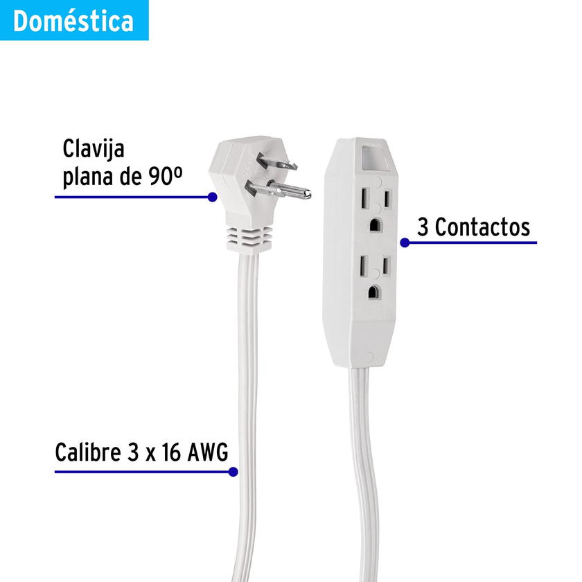 Extensión eléctrica doméstica 3 m blanca con clavija recta