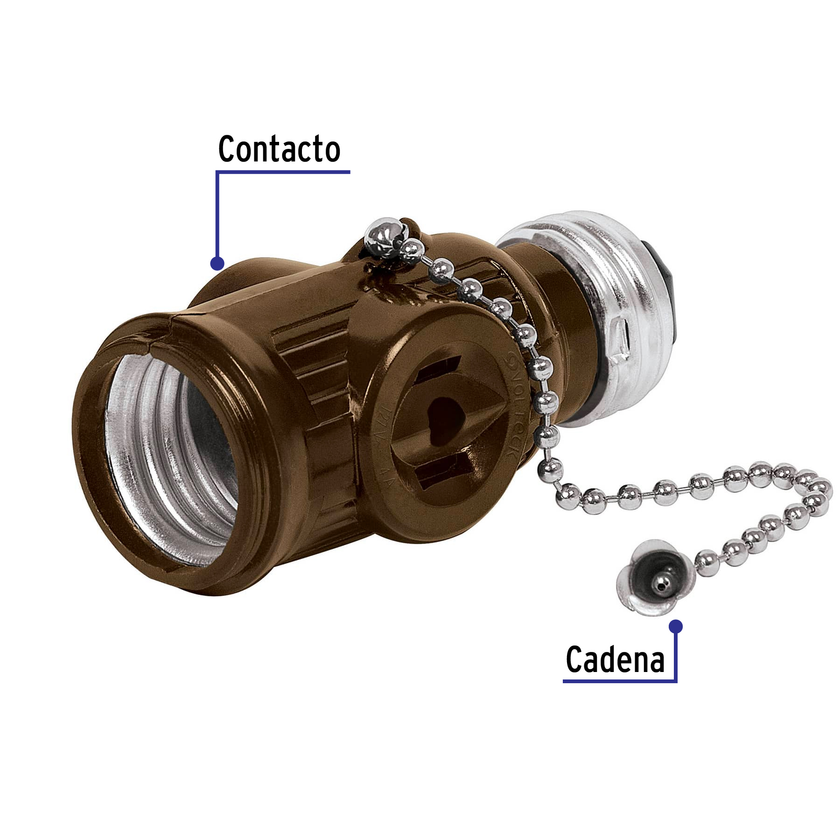 Portalámpara de baquelita, cadena y doble contacto, Volteck