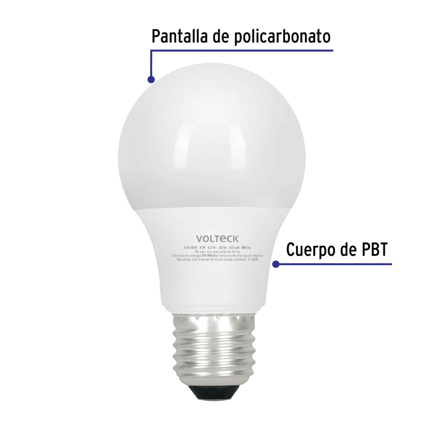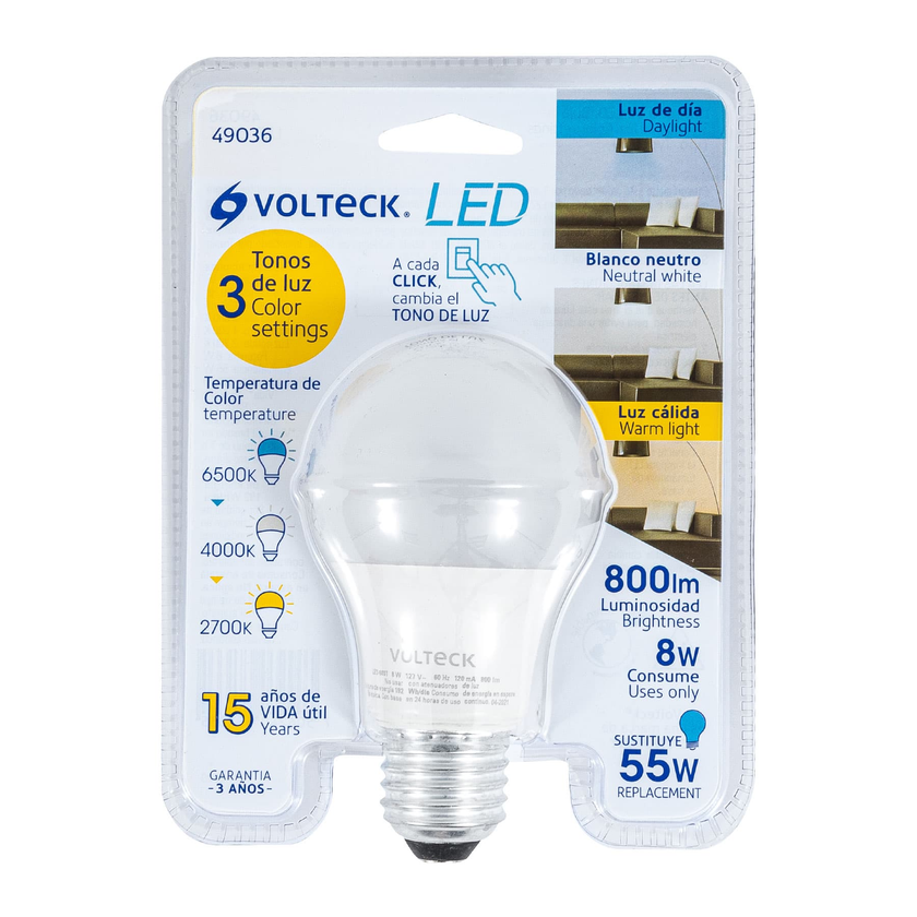 Lámpara LED,A19,8W,luz de día,Volteck Basic, 4 pzas en caja