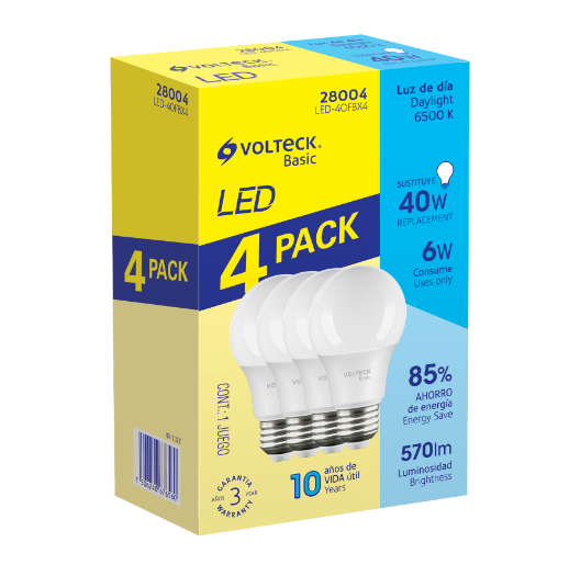 Lámpara LED,A19,6W,luz de día,Volteck Basic, 4 pzas en caja