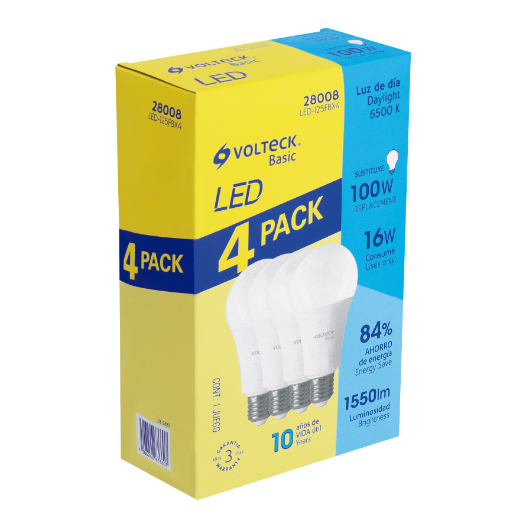 Lámpara LED,A19,16W,luz de día,Volteck Basic, 4 pzas en caja