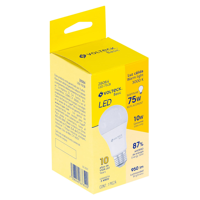 Lámpara de LED tipo bulbo A19 10 W, luz cálida, caja, Basic