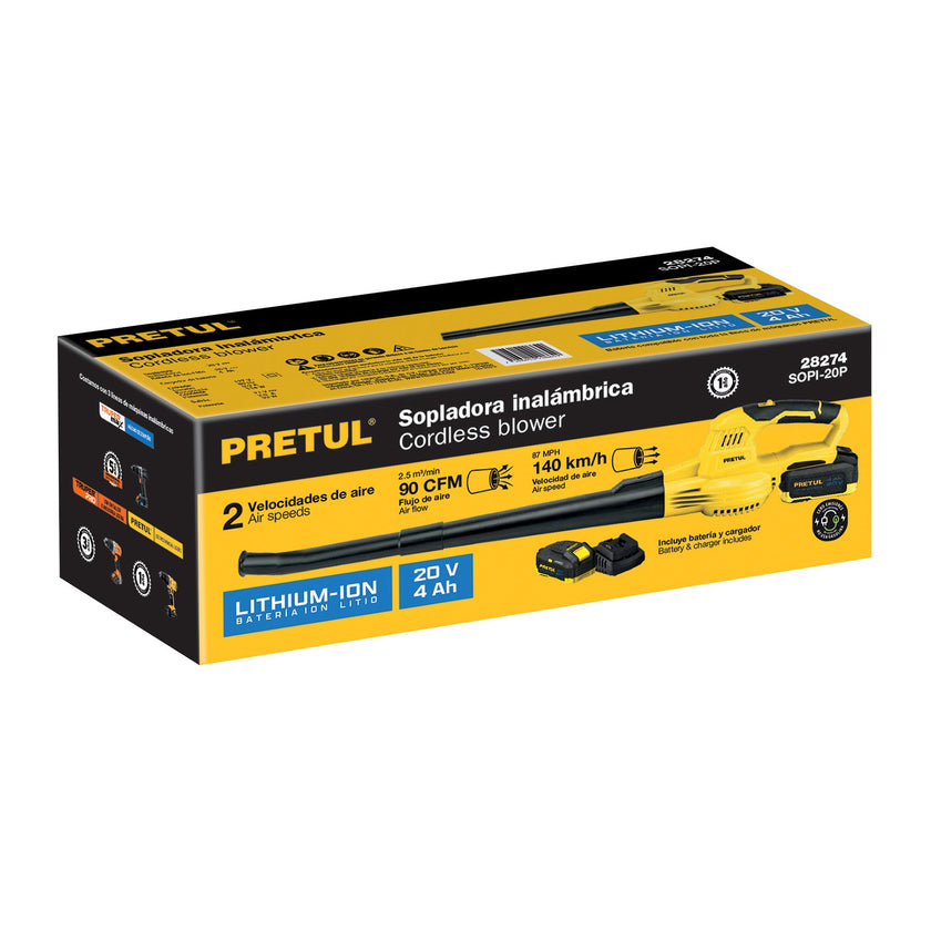 Sopladora inal. para taller 20V, 1 bat. 2Ah, 1 carg. PRO