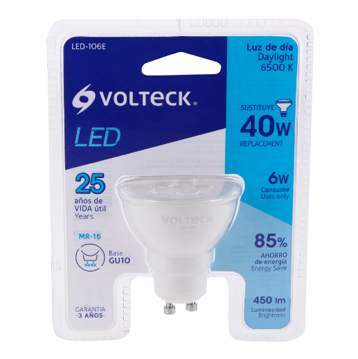 Lámpara LED tipo bulbo A19 6 W luz cálida, caja, Volteck