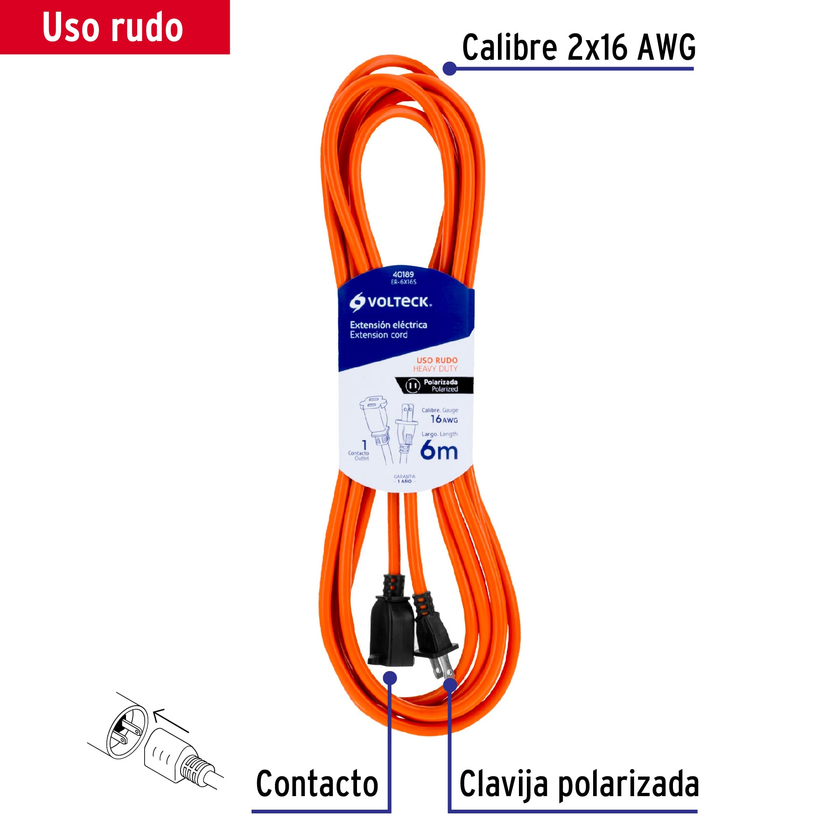 Extensión eléctrica doméstica 6 m blanca con clavija recta