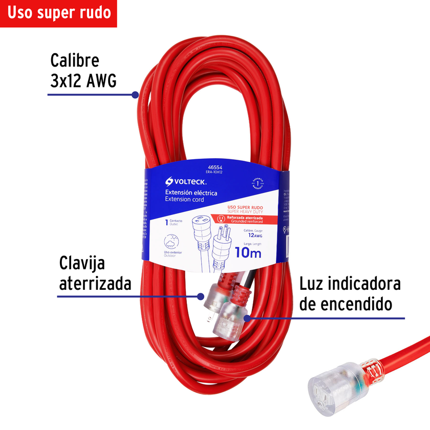 Extensión eléctrica doméstica 10 m blanca con clavija recta