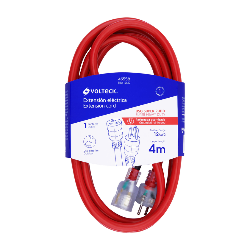Extensión eléctrica doméstica 4 m blanca con clavija recta