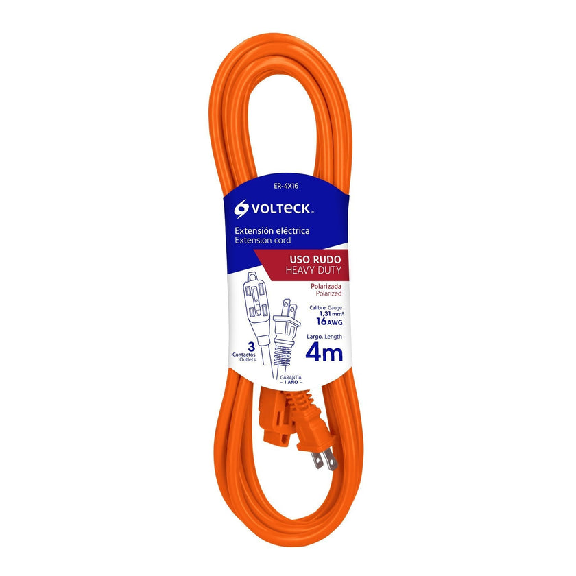 Extensión eléctrica uso rudo, 4 m, calibre 16, Volteck