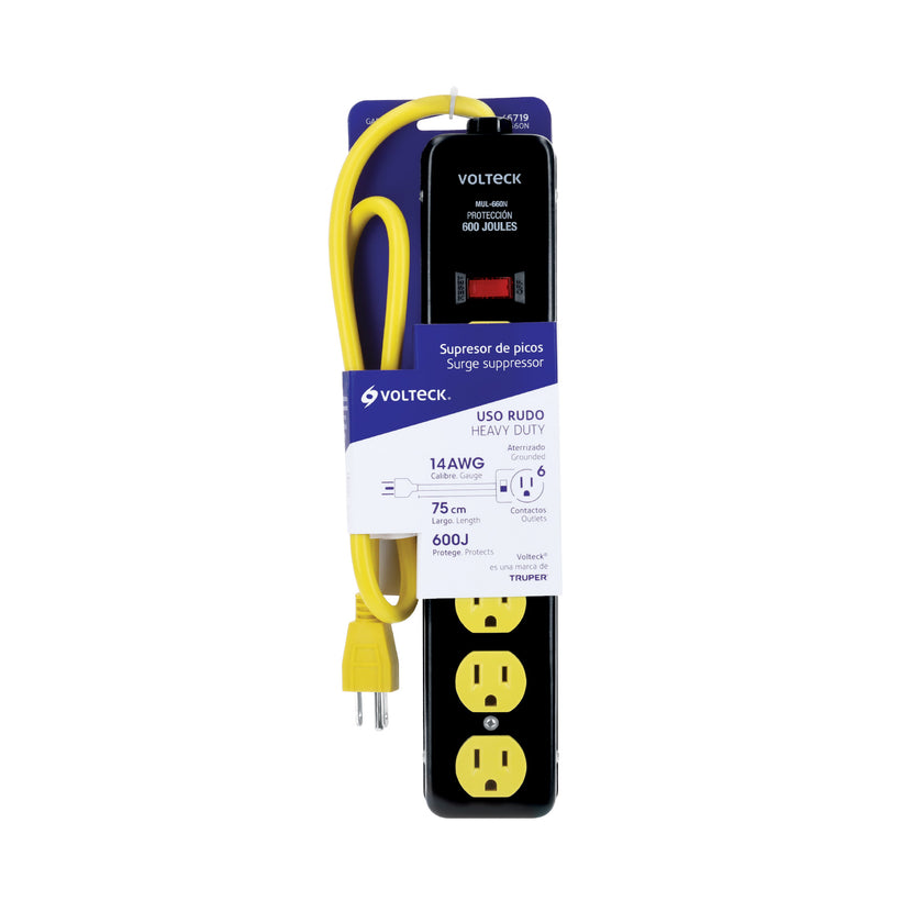 Multicontacto 14 AWG, 6 entradas sup. de picos 600 J, negro