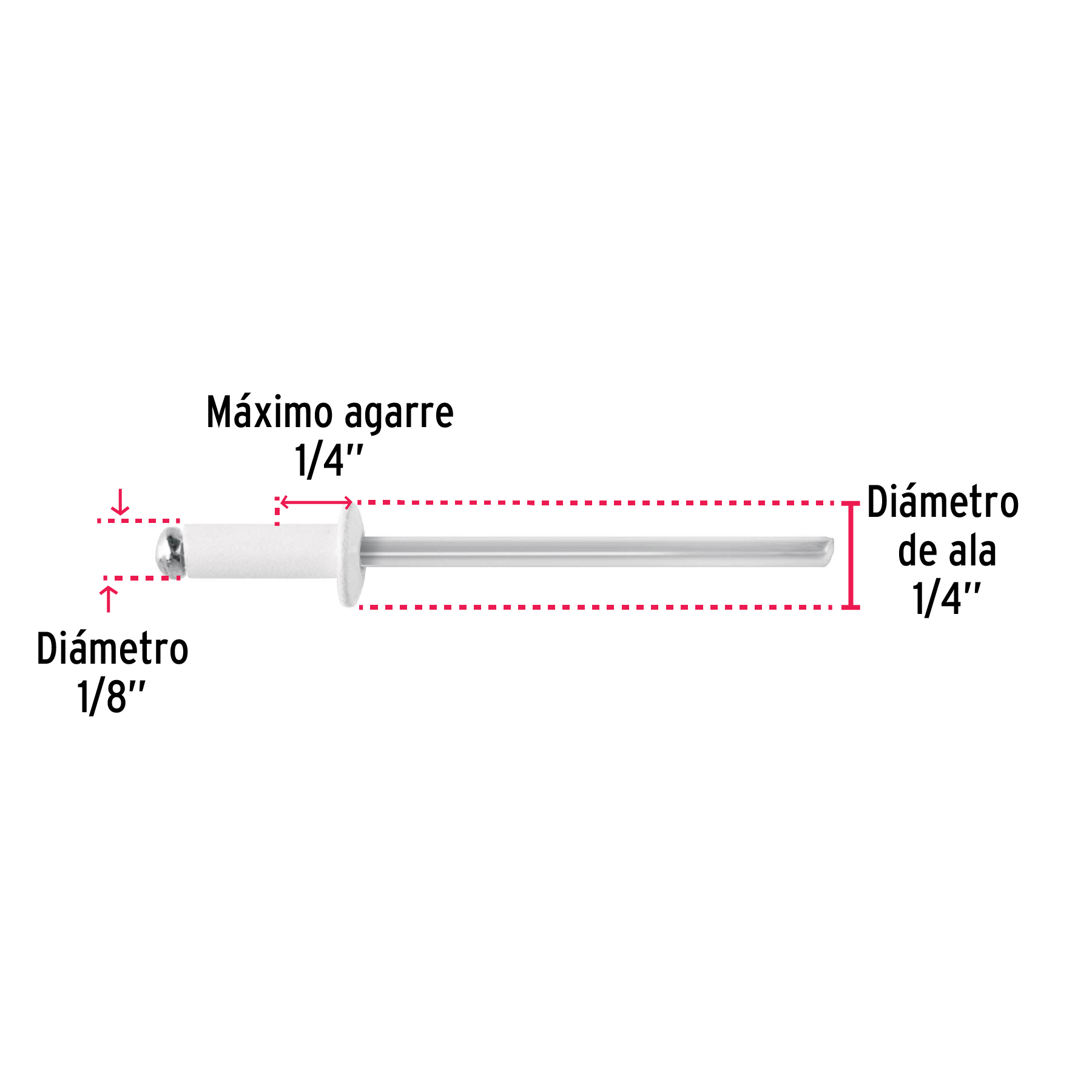 Bolsa c/50 remaches 1/8'x1/4' blancos de aluminio, ala 1/4'