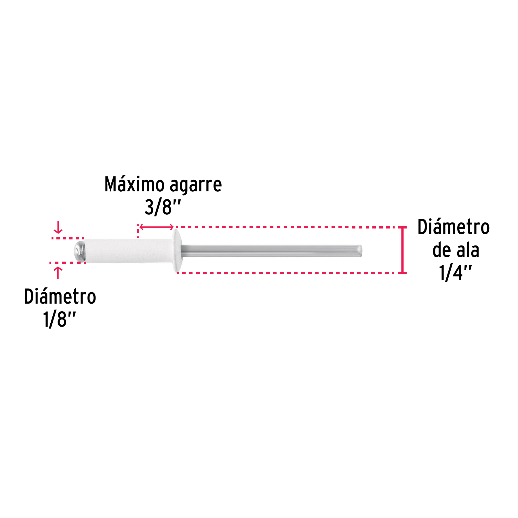 Bolsa c/50 remaches 1/8'x3/8' blancos de aluminio, ala 1/4'