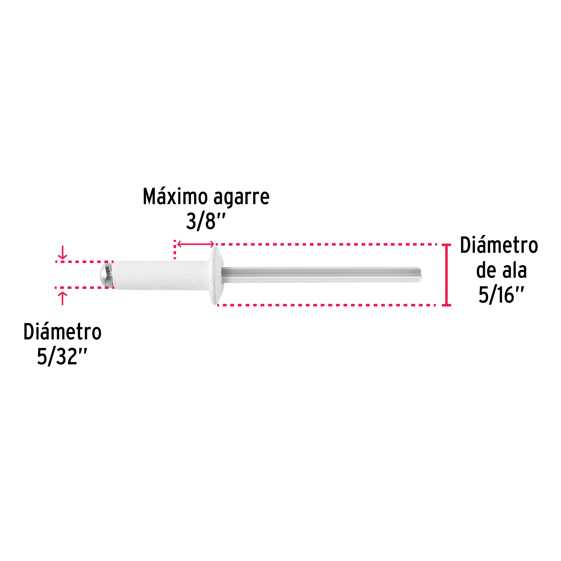 Bolsa c/50 remaches 5/32'x3/8' blancos aluminio, ala 5/16'