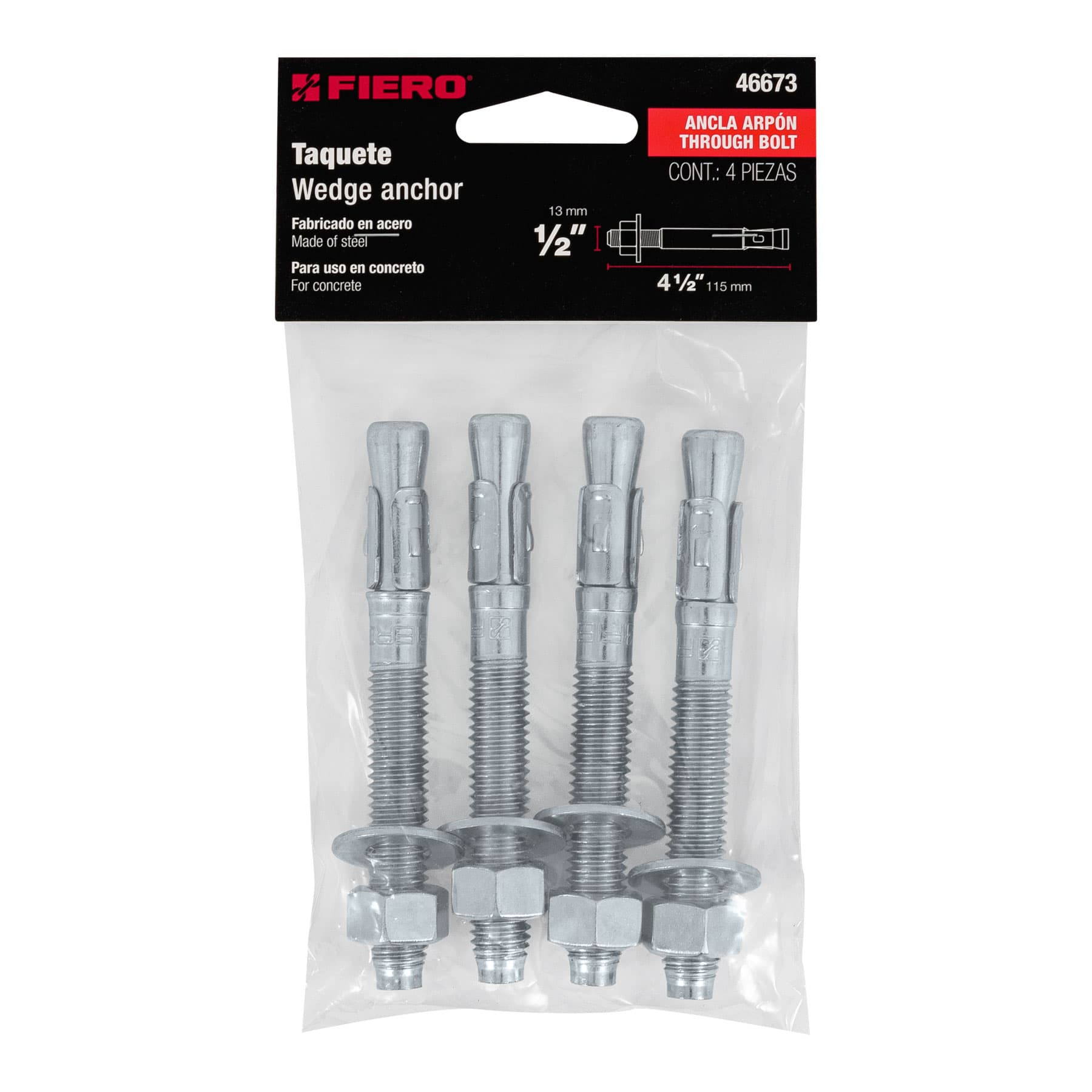46673 | TAE-1/2A4 | 1/2" (13 mm) x 4 1/2" (115 mm) | 1/2" | 4 |