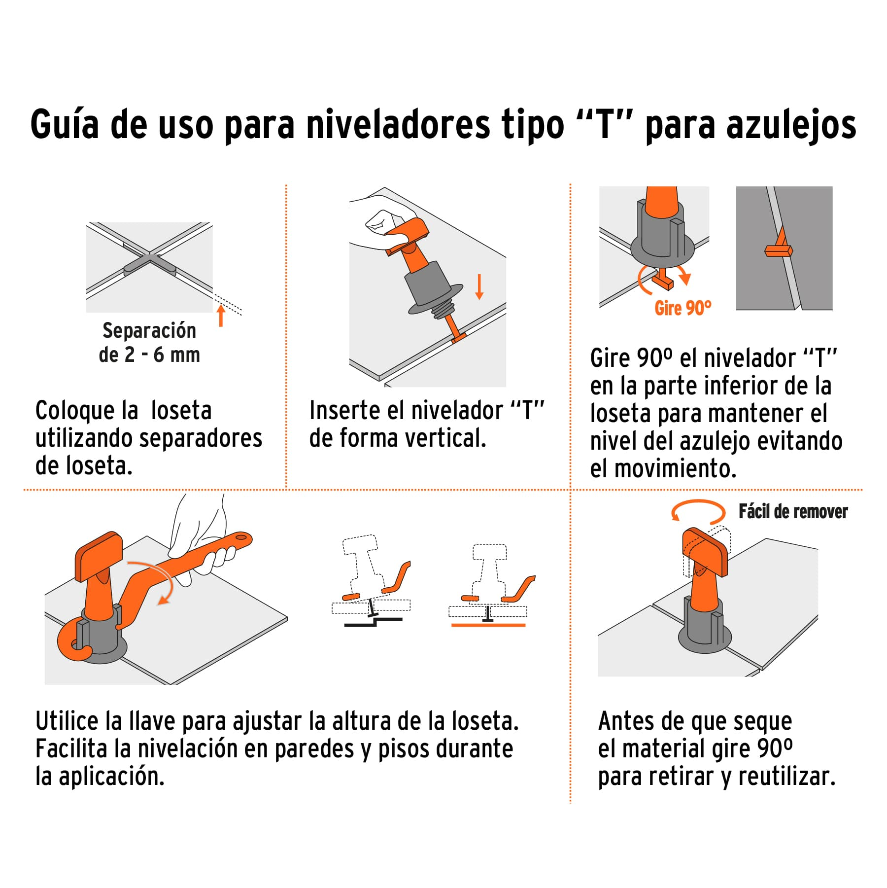 - Facilitan la instalación evitando el movimiento del azulejo, ajustando la altura y sosteniendo bordes de manera uniforme