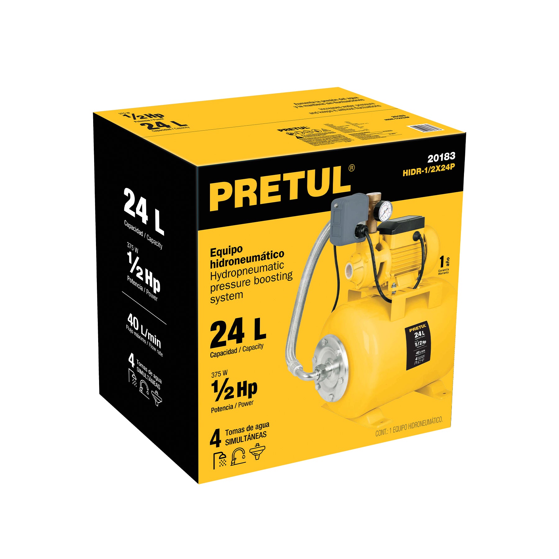 Bomba hidroneumática 1/2 HP, 24 litros, Pretul