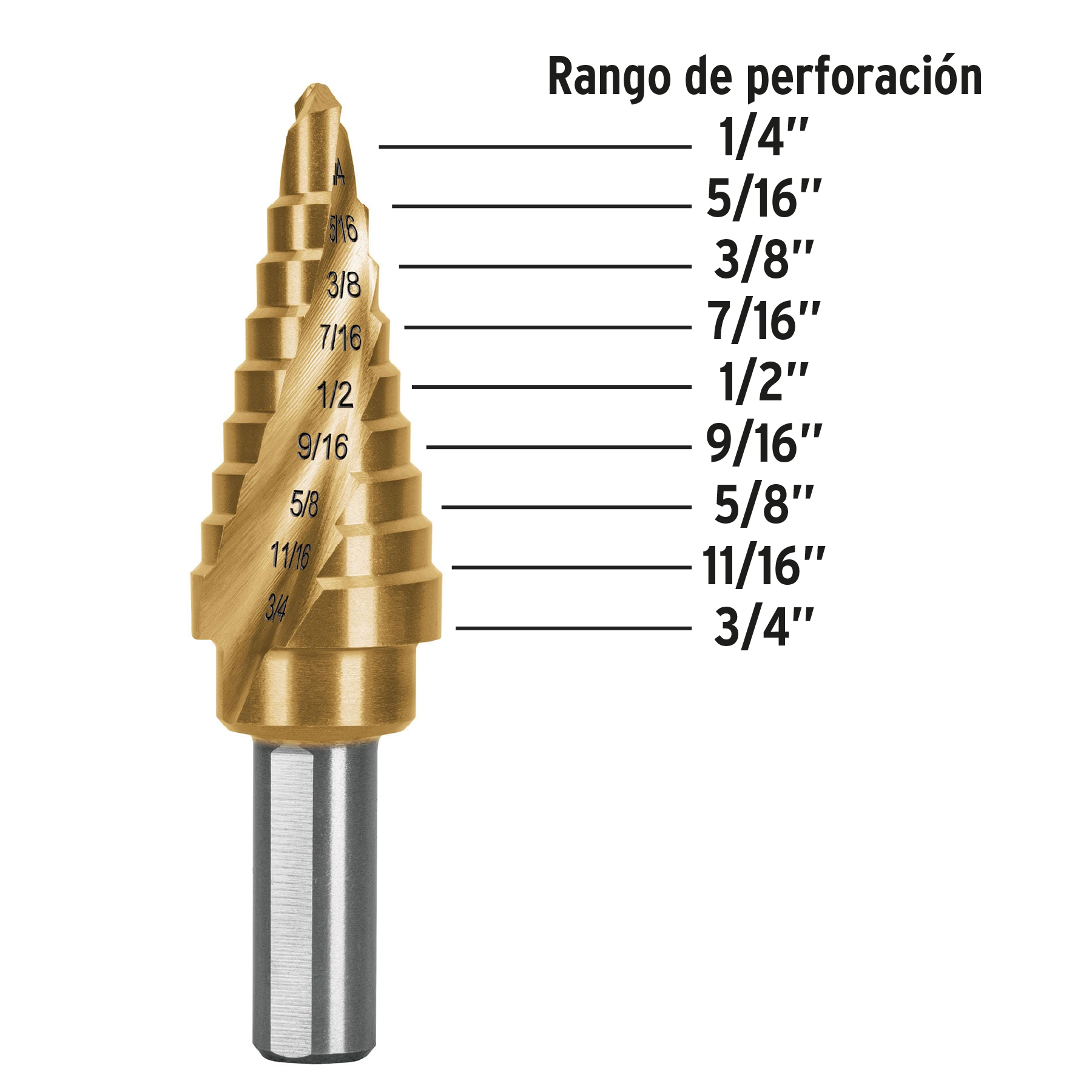 Broca escalonada titanio 9 escalones 1/4' a 3/4', Expert