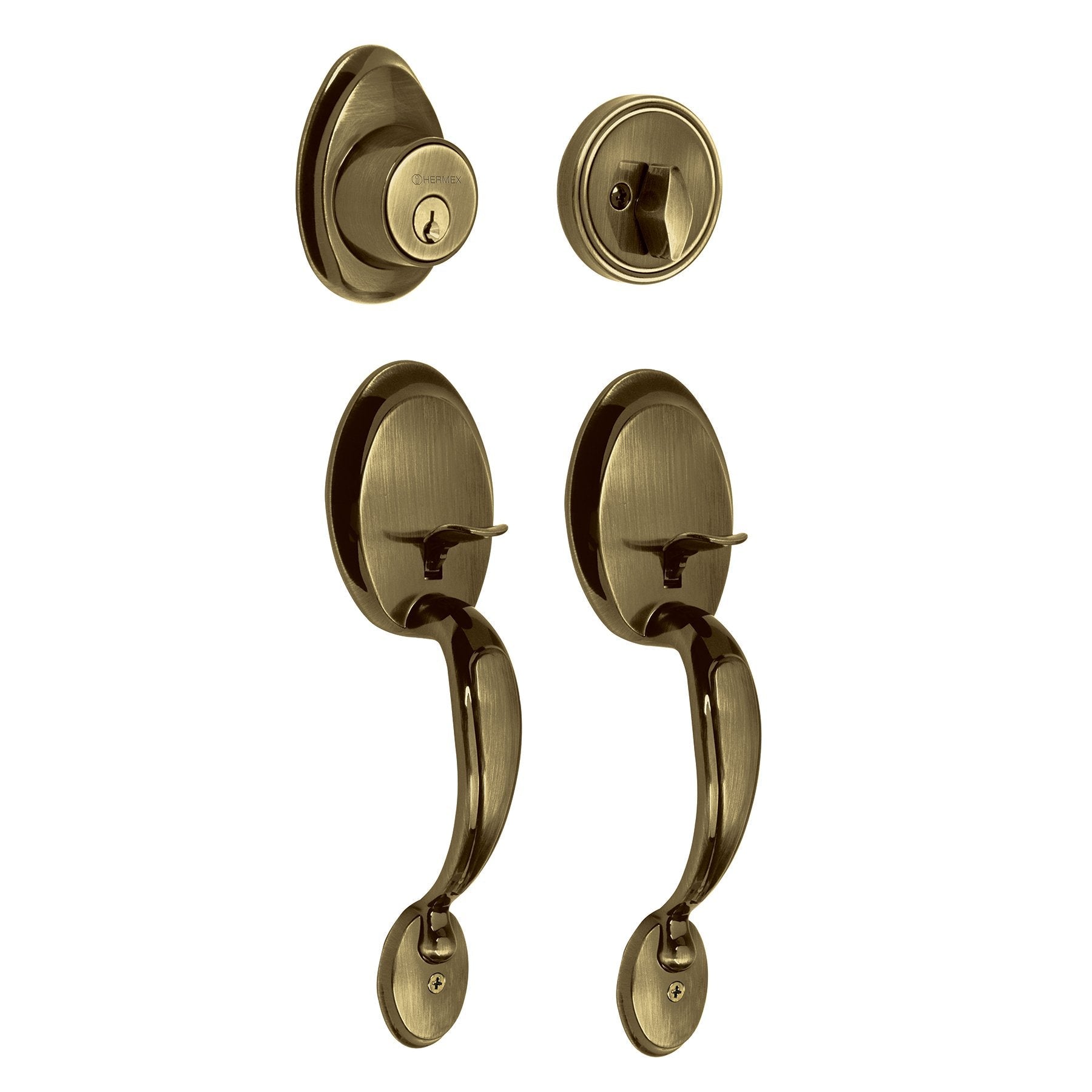 Cerradura entrada, latón antiguo, mariposa, Hermex Basic