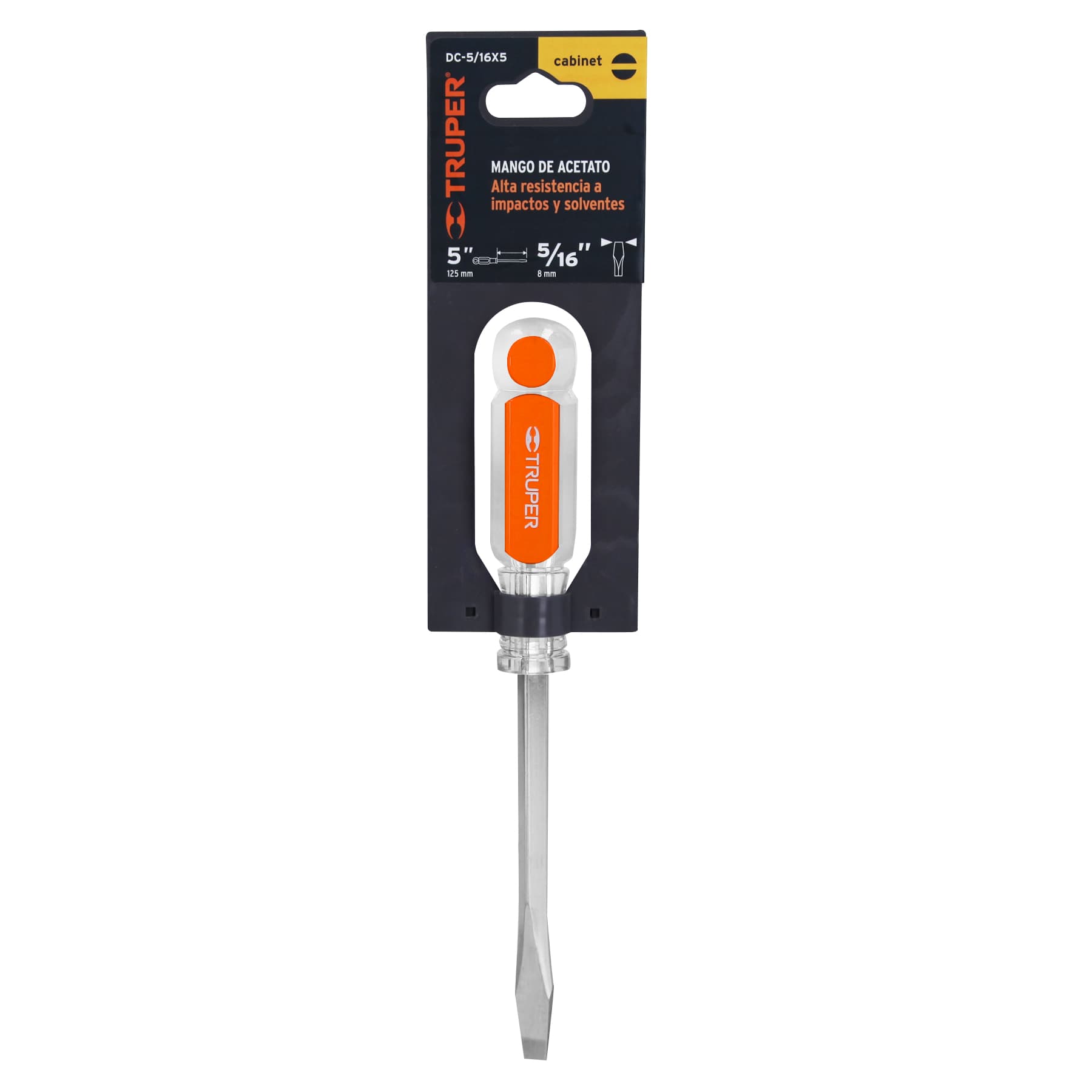 Desarmador plano, barra cuadrada, mango acetato, 5/16 x 5"