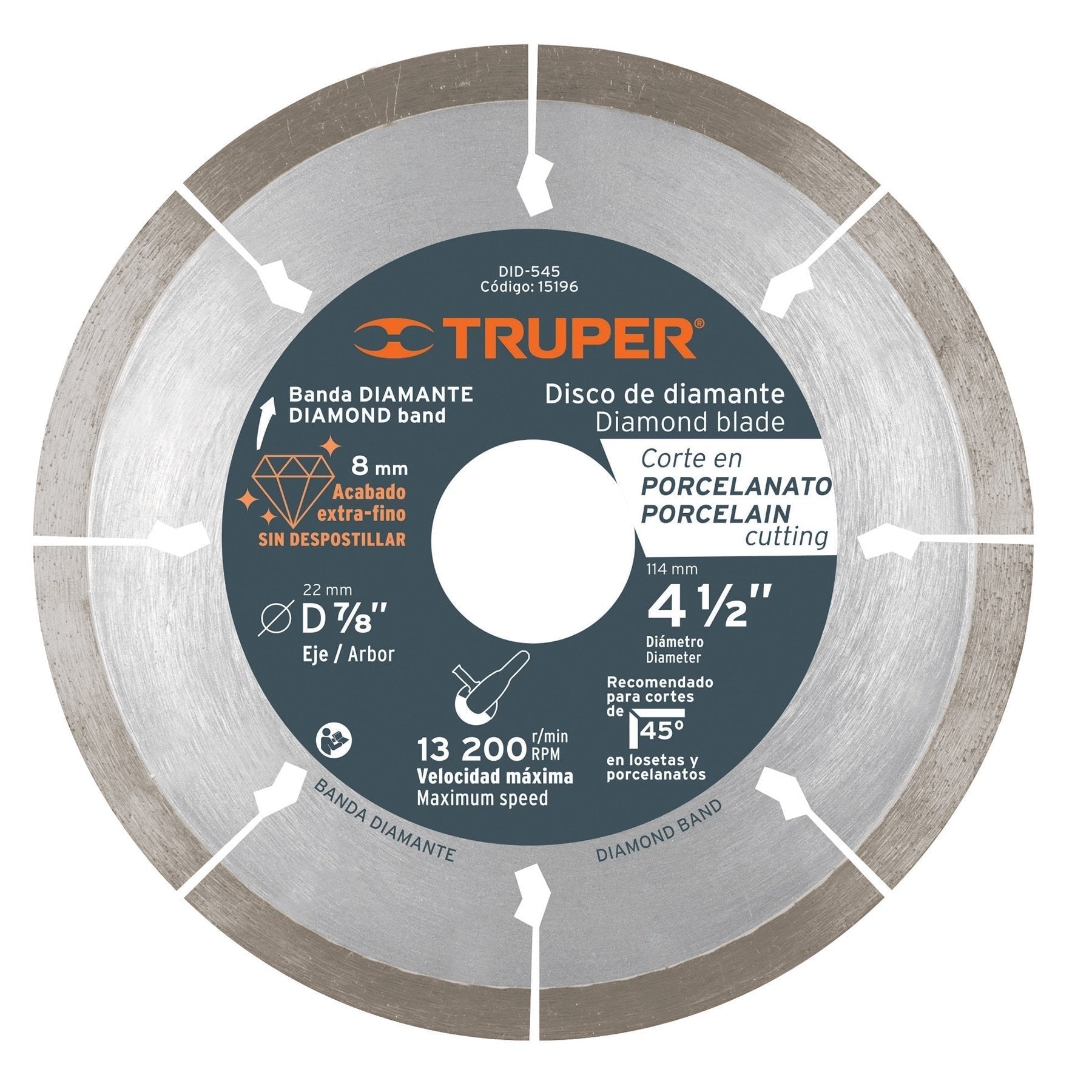 Disco de diamante, rin continuo, 4-1/2" corte porcelanato