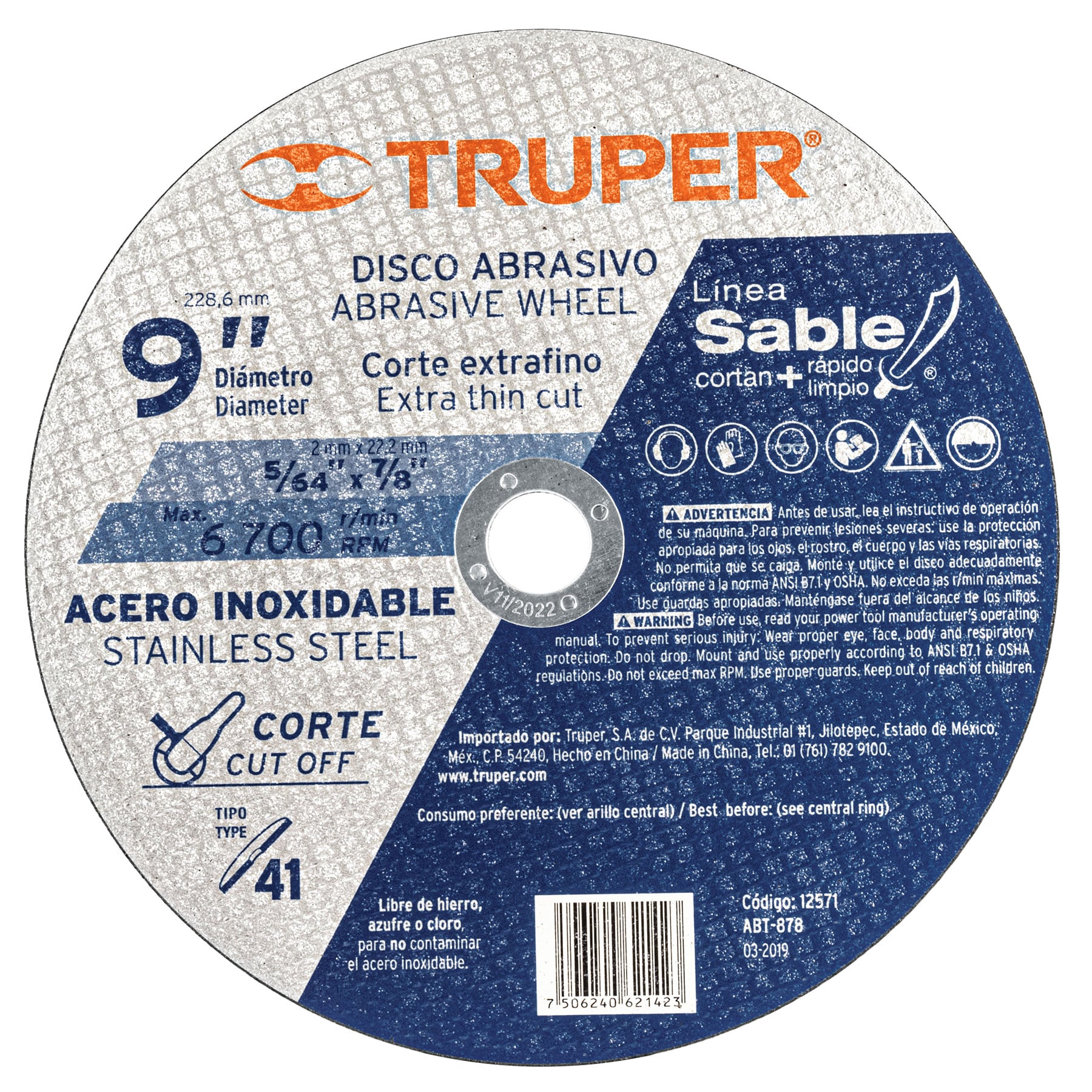 Disco p/corte acero inox., T41, diámetro 9", alto rendimient