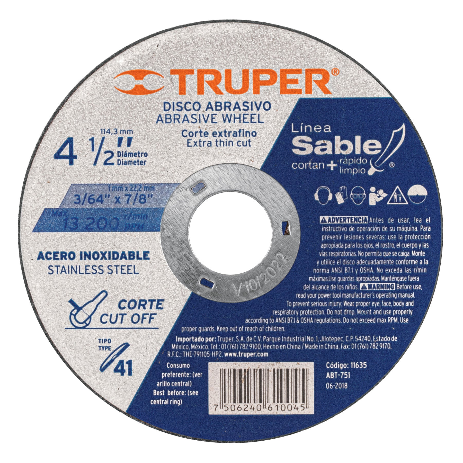 Disco para corte acero inoxidable, tipo 41, diámetro 4-1/2"