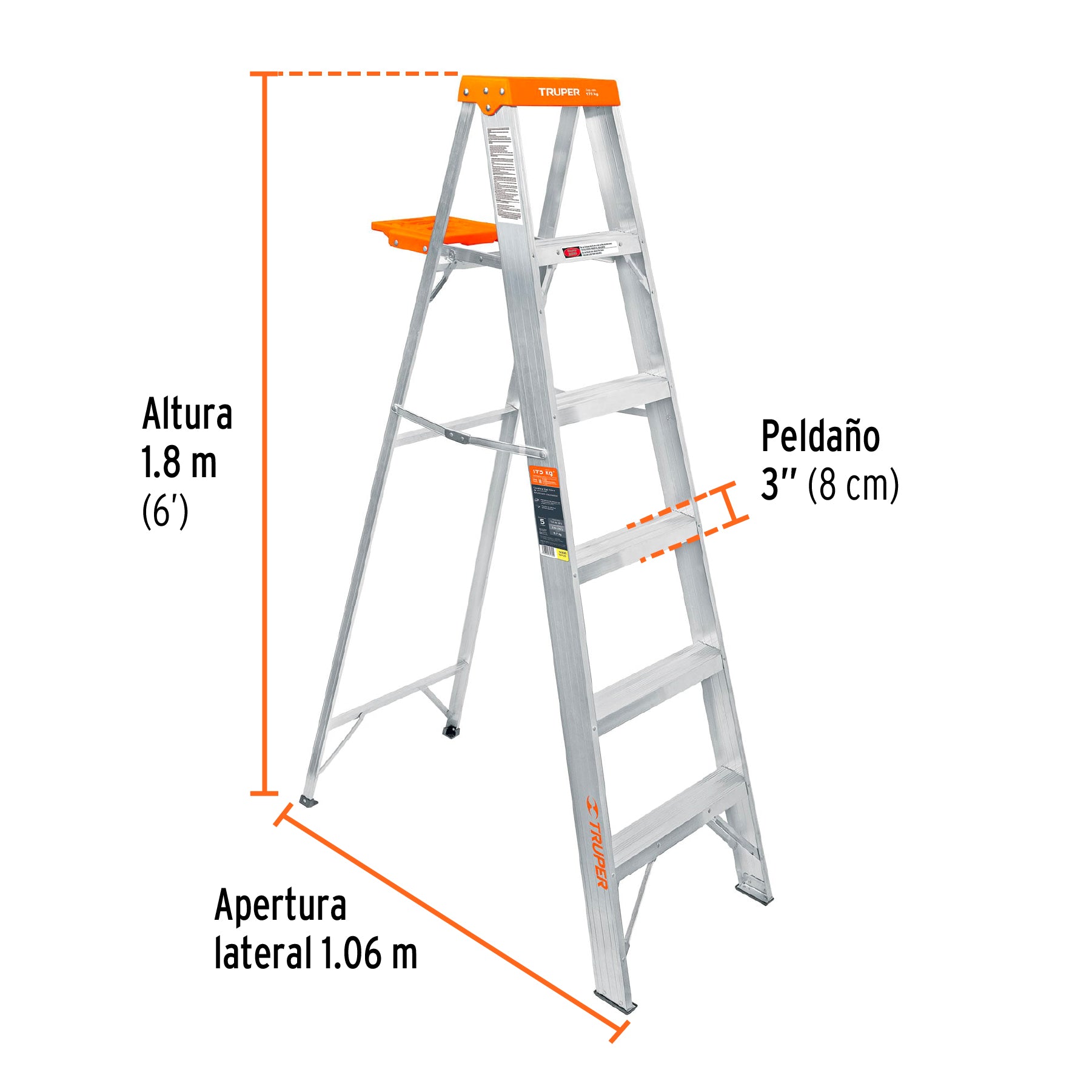 Escalera de tijera, tipo ll, 5 escalones y bandeja