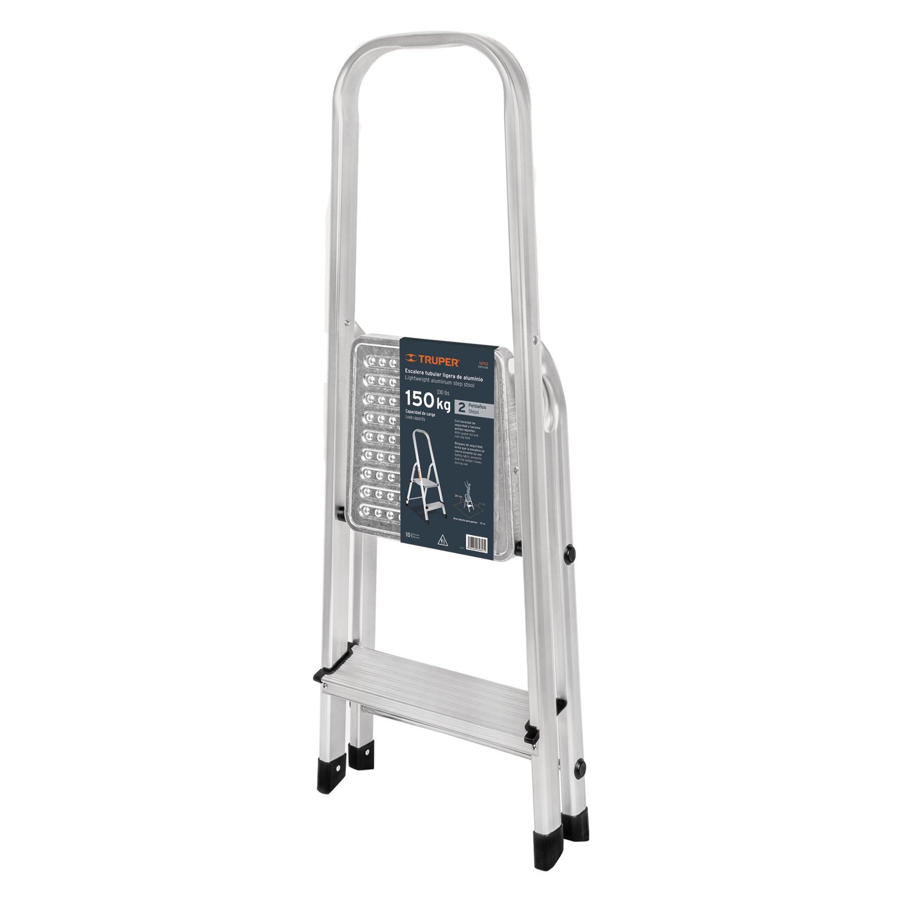 Escalera tubular, plegable, 2 peldaños, aluminio