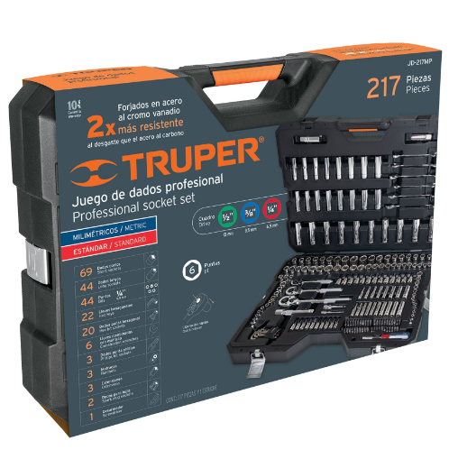 Juego autoclé, cuadro 1/4, 3/8 y 1/2", 217 piezas, std y mm