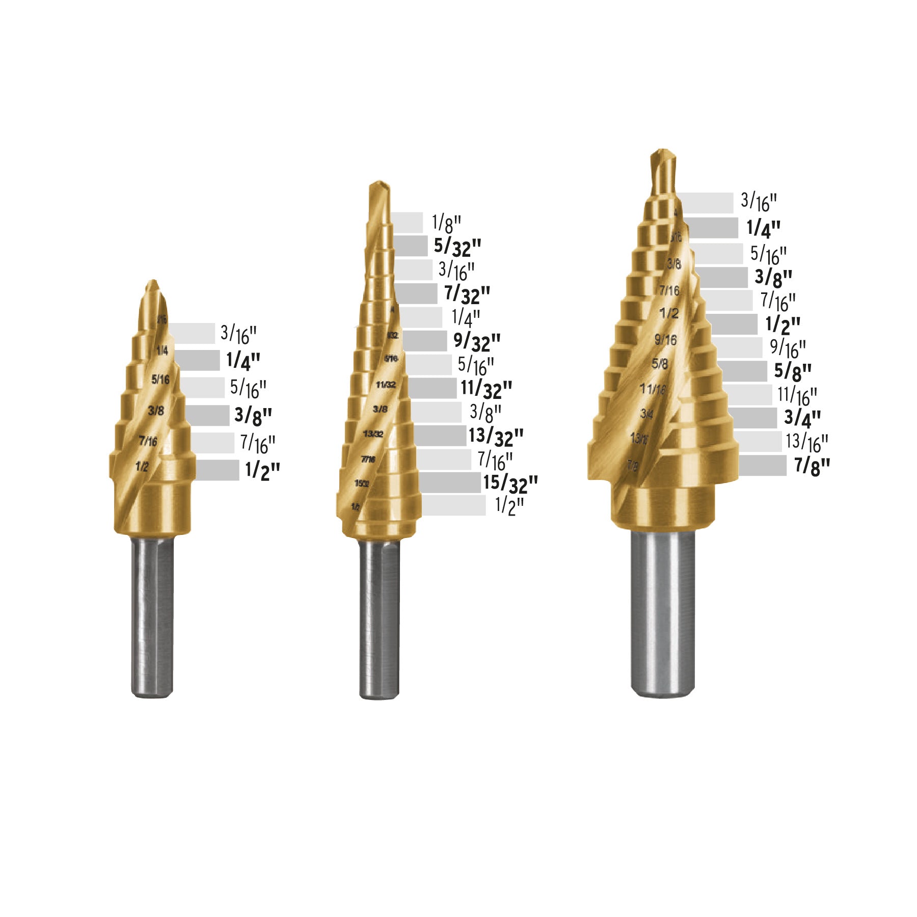 Juego de brocas escalonadas titanio 3 piezas, Expert