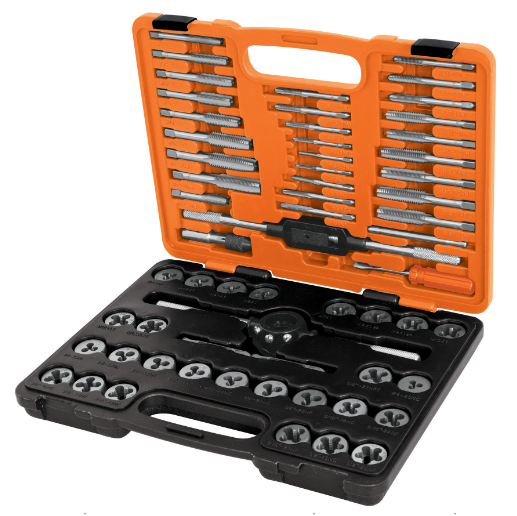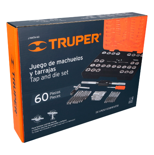 - 27 Tarrajas (std y mm) Medidas: M3X0.5, M4X0.7, M5X0.8, M6X1, M7X1, M8X1.25, M9X1.25, M10X1, M10X1.5, M12X1.75, 1/8x27NPT, 1/4x20NC, 1/4x28NF, 5/16X18NC, 5/16X24NF, 3/8X16NC, 3/8X24NF, 7/16X14NC, 7/16X20NF, 1/2X13NC, 1/2X20NF, 4-40NC, 6-32NC, 8-32NC10-24NC, 10-32NF, 12-24NC