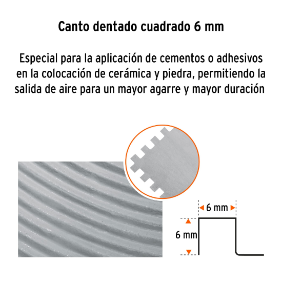 - Especial para la aplicación de cementos o adhesivos en la colocación de cerámica y piedra, permitiendo la salida de aire para un mayor agarre y mayor duración