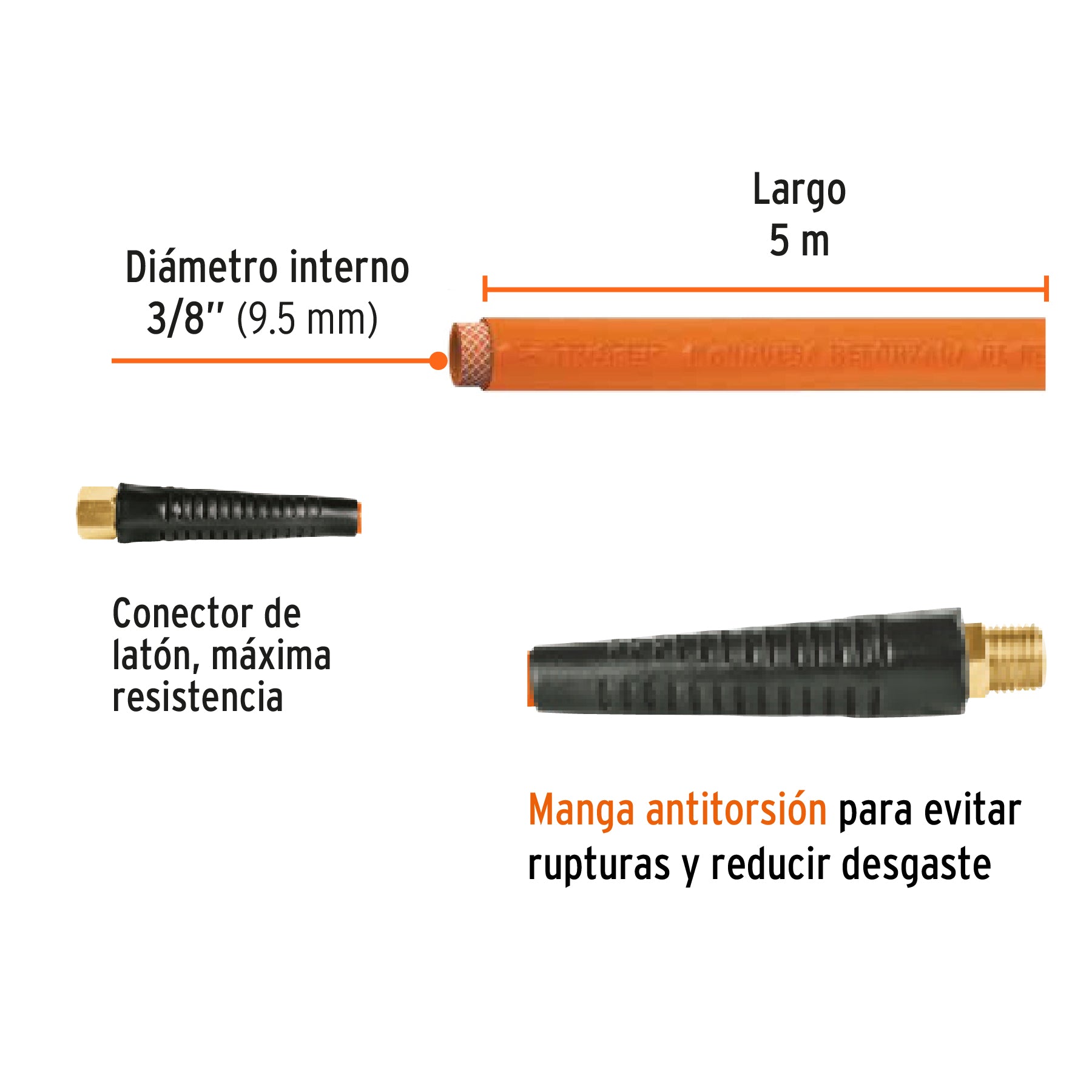 - Manguera reforzada y tramada 3 capas evita deformación o grietas