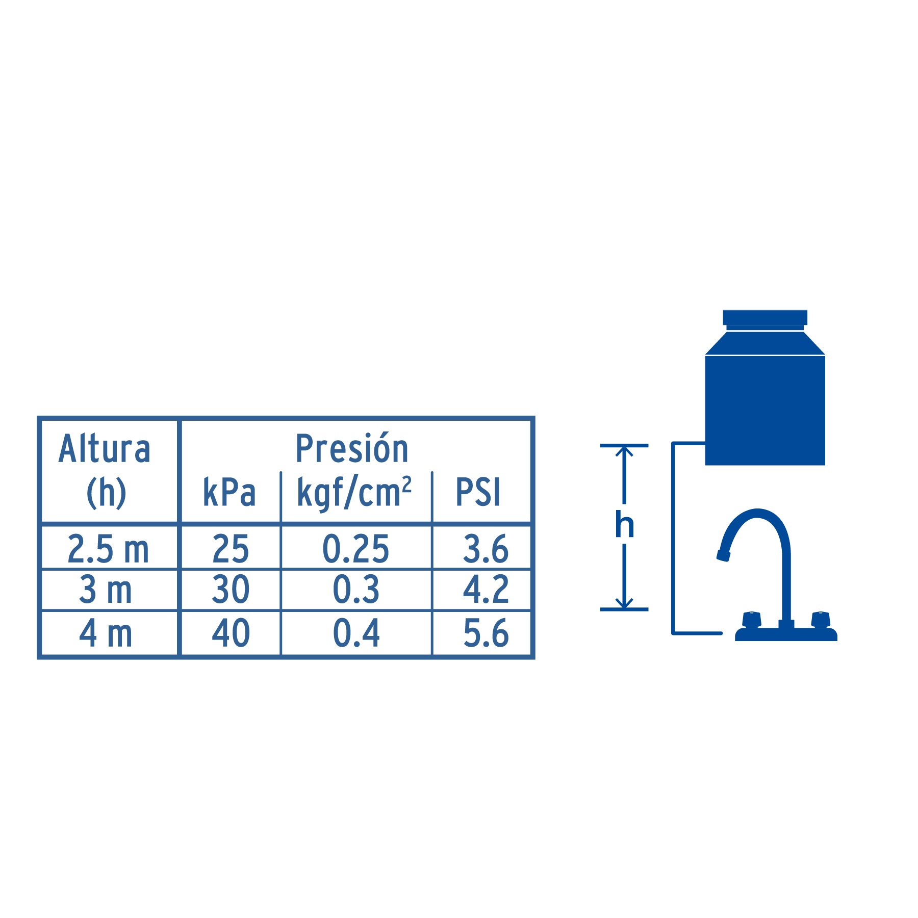 | Presión de trabajo | 0.25 kgf/cm² a 1 kgf/cm² |