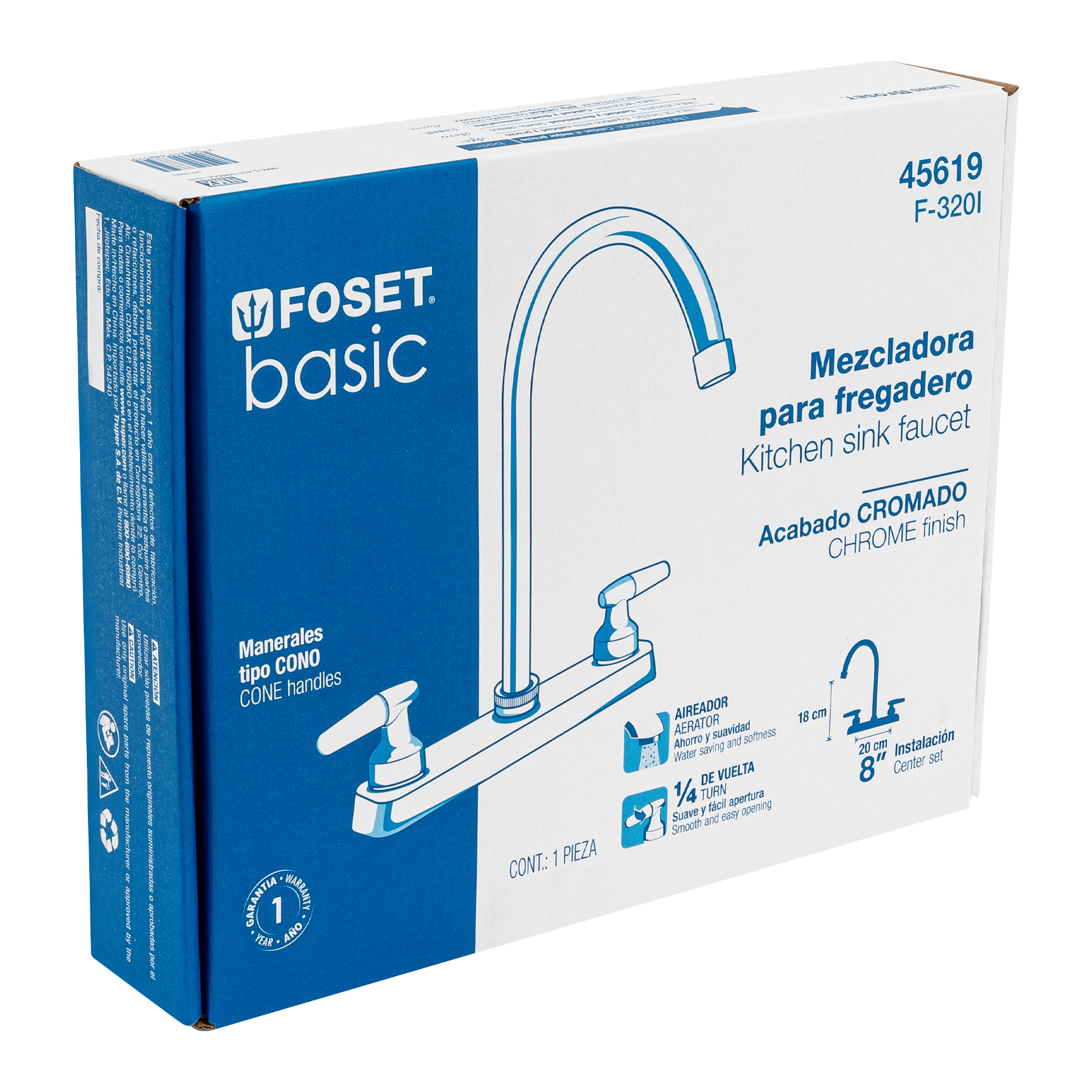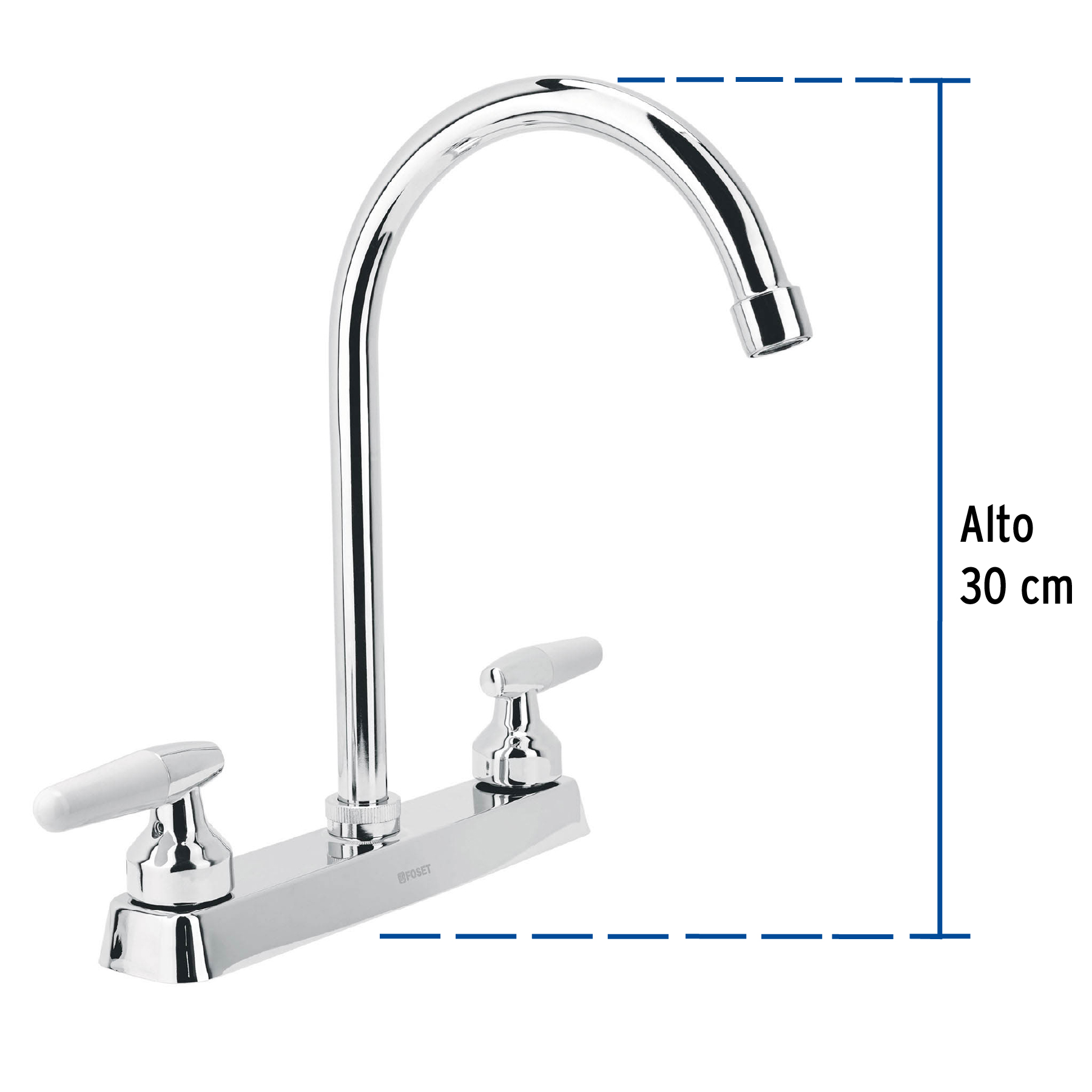 Mezcladora p/fregadero, manerales hex, cuello curvo,Basic