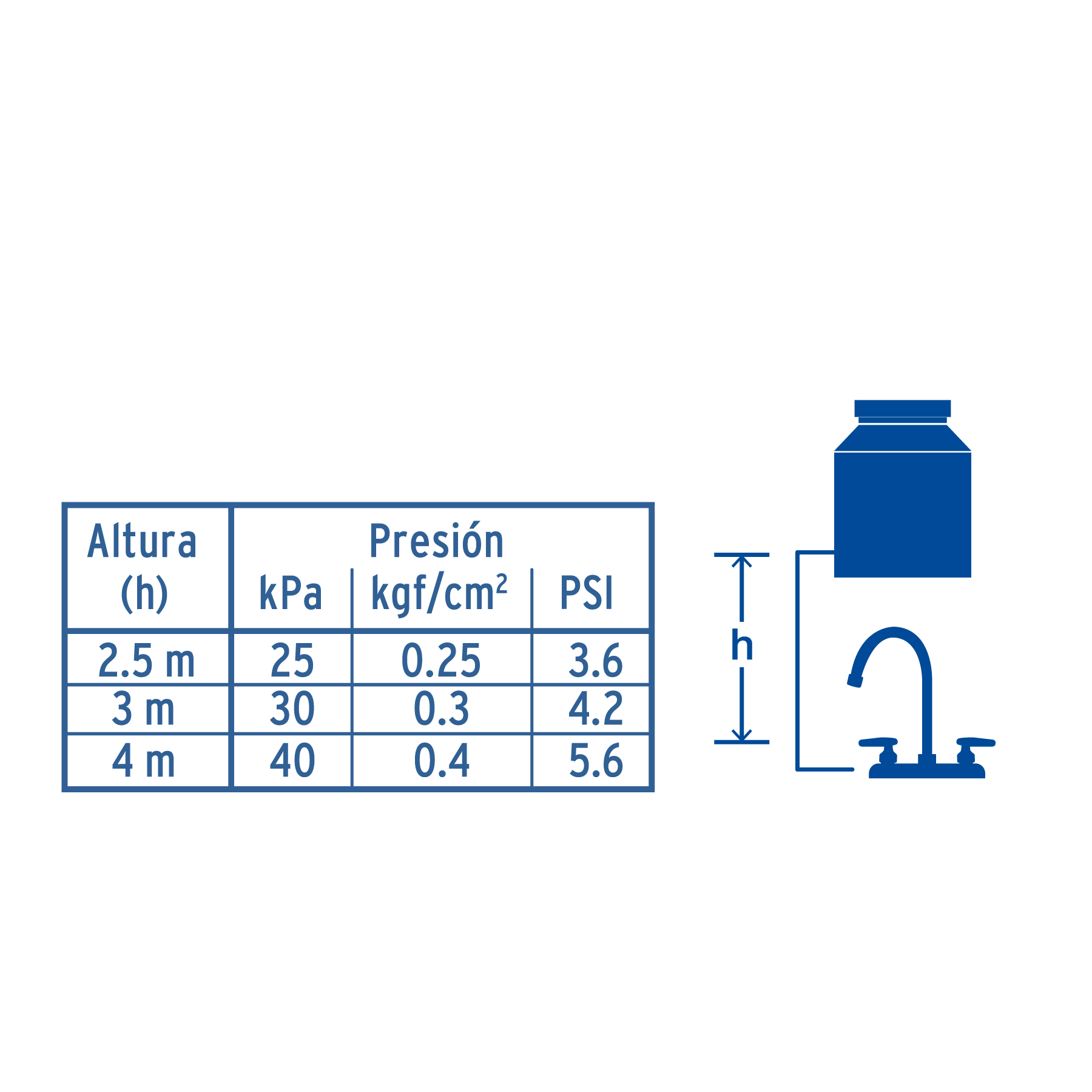 | Presión de trabajo | 0.25 kgf/cm² a 1 kgf/cm² |