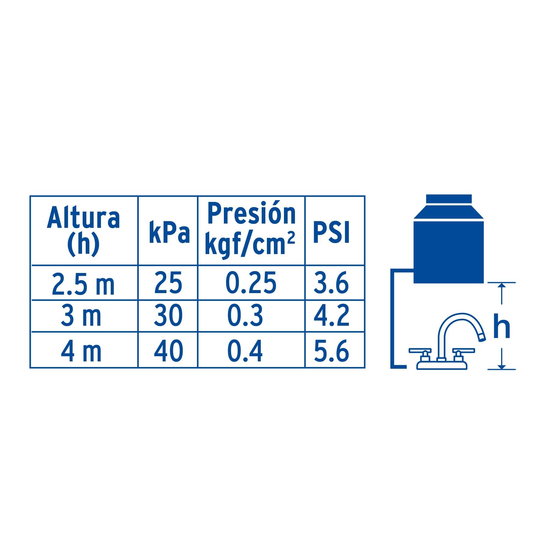 | Presión de trabajo | 0.25 kgf/cm² a 3 kgf/cm² |