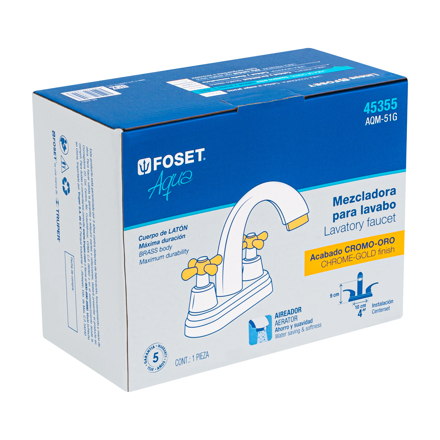 Mezcladora p/lavabo,manerales cruceta,cuello alto,oro,Aqua