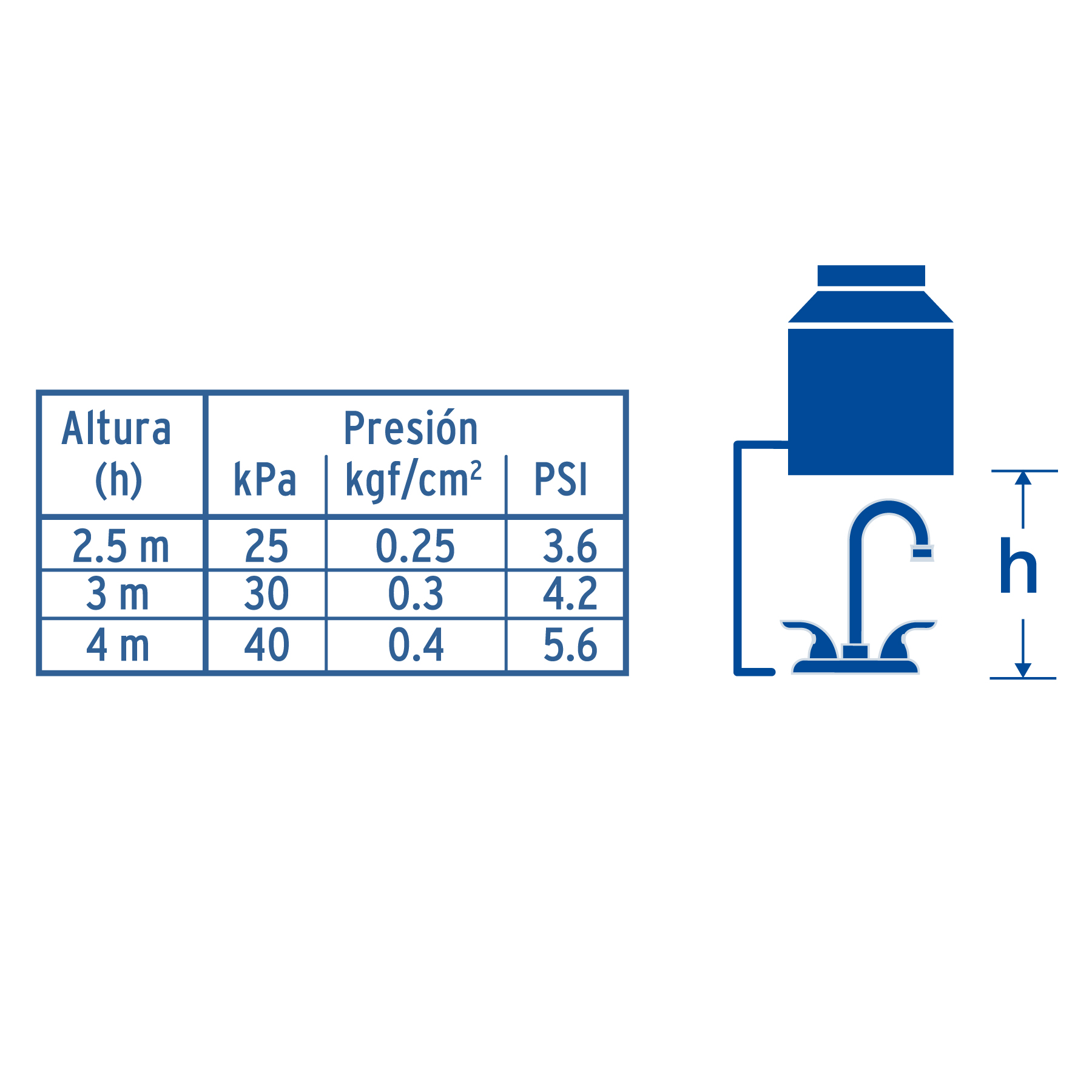 | Presión de trabajo | 0.25 kgf/cm² a 1 kgf/cm² |