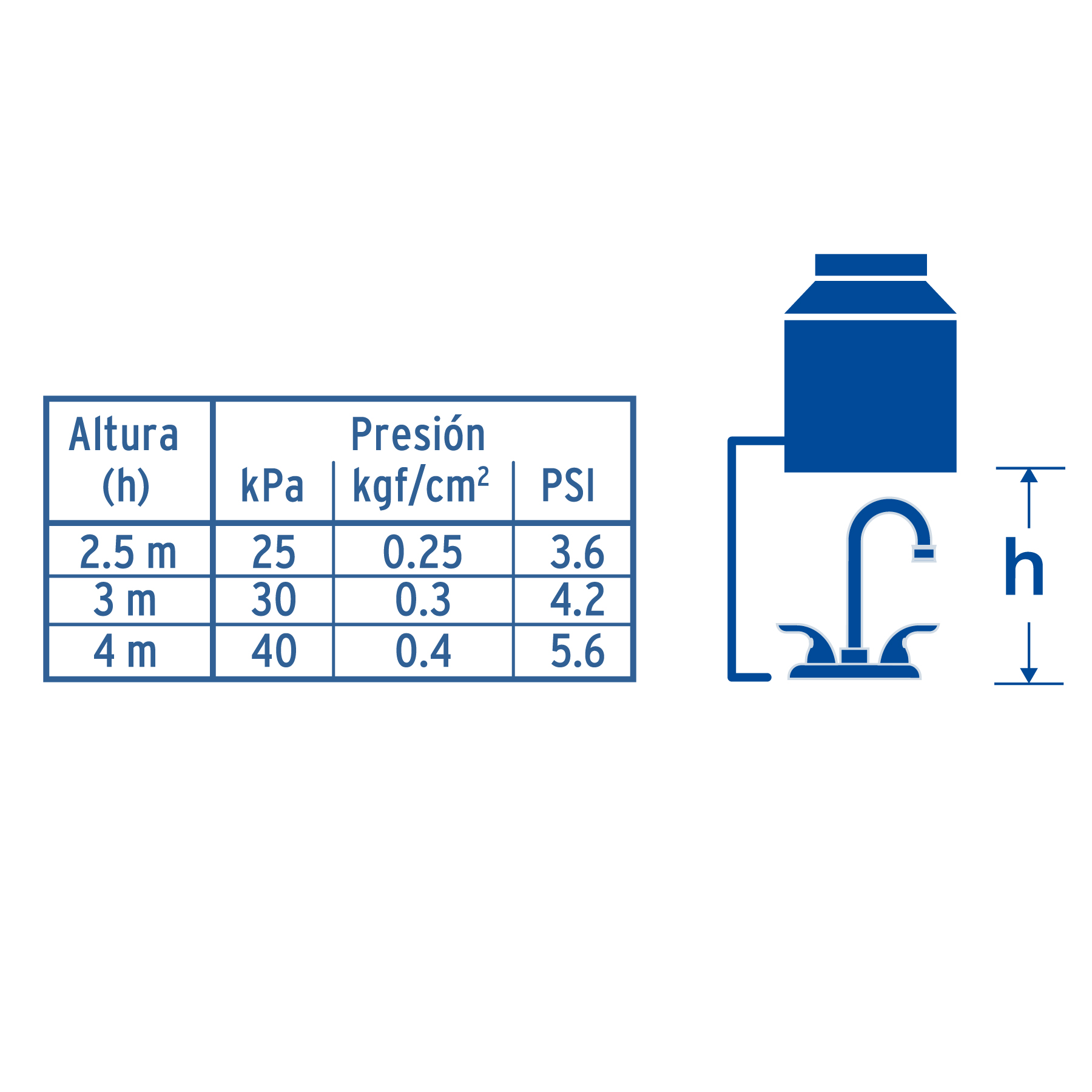 | Presión de trabajo | 0.25 kgf/cm² a 1 kgf/cm² |