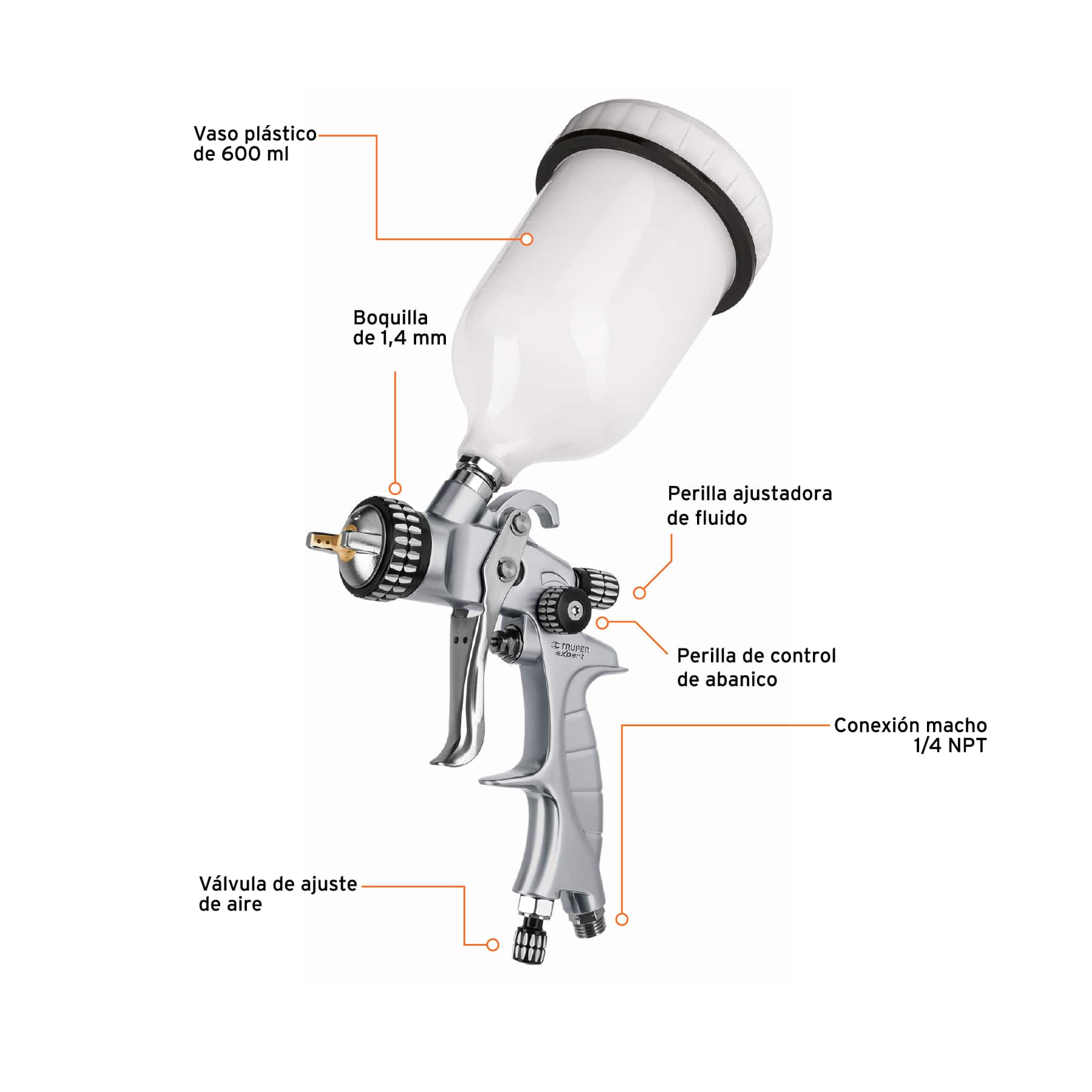 Pistola p/pintar gravedad HVLP,vaso plástico, 1.4 mm, Expert