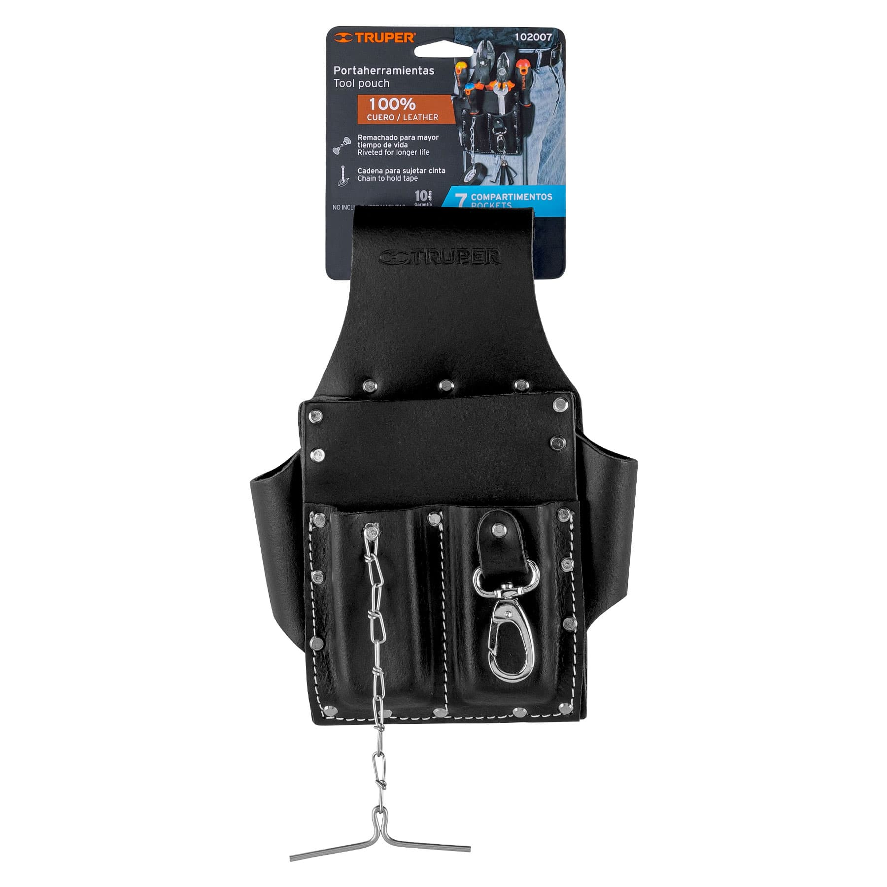 Porta herramientas grande de cuero, 7 compartimentos