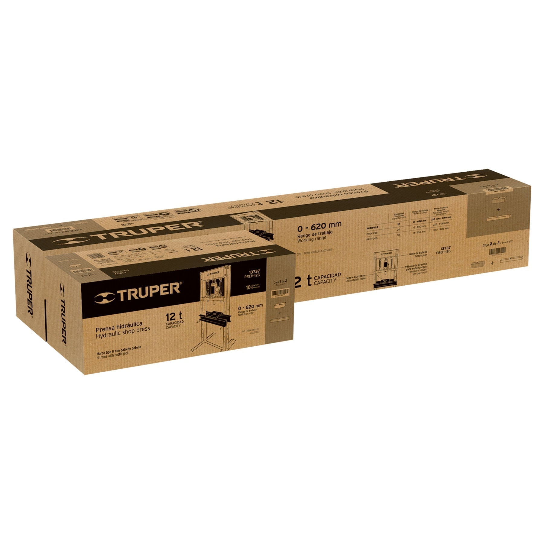 | 13737 | PREH-12G | 12 t | 0 - 620 mm | 210 - 840 mm | 1.3 m x 0.5 m | 43 kg | Se surte en 2 cajas por separado |
