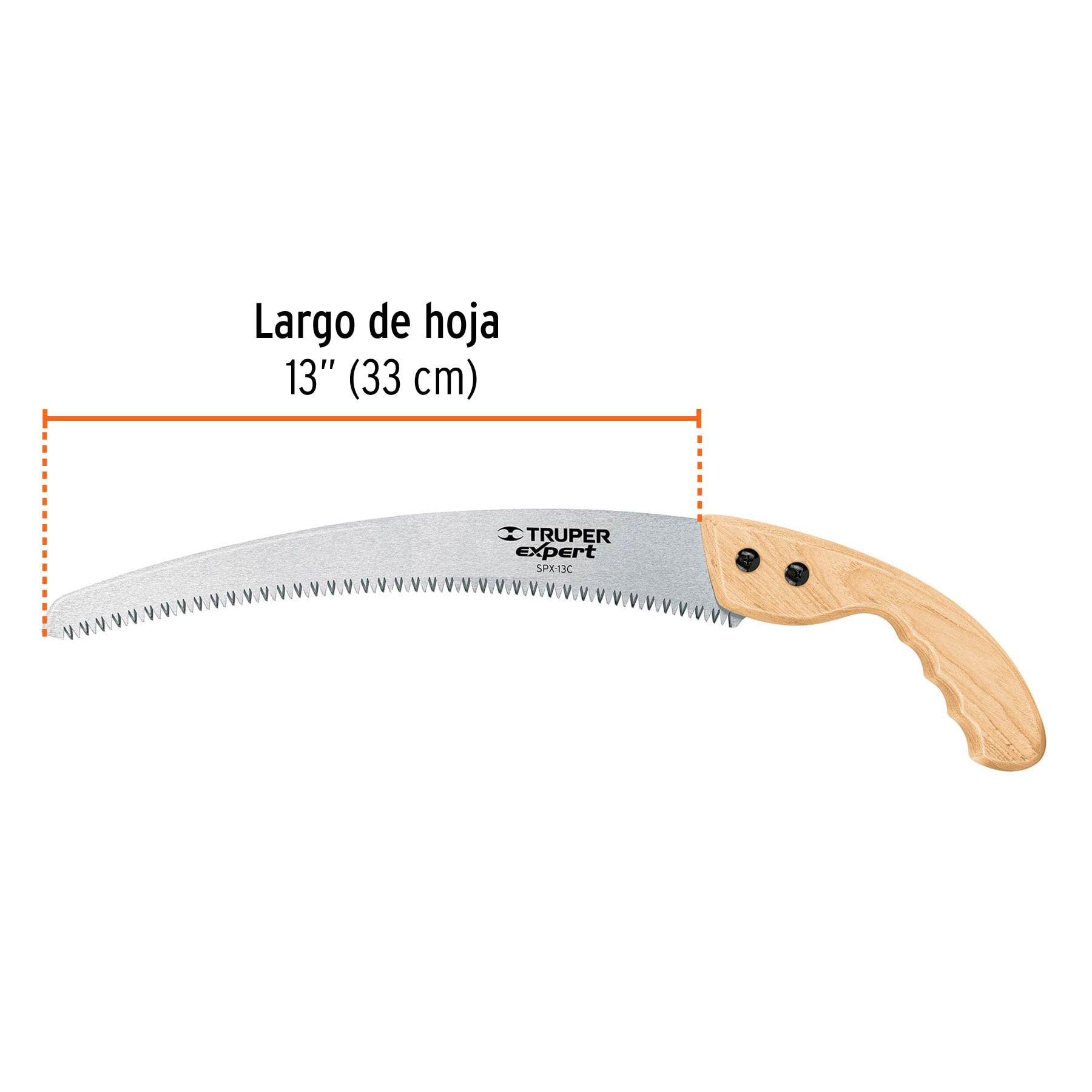 Serrucho de poda 13', hoja curva, 7 DPP, Truper Expert