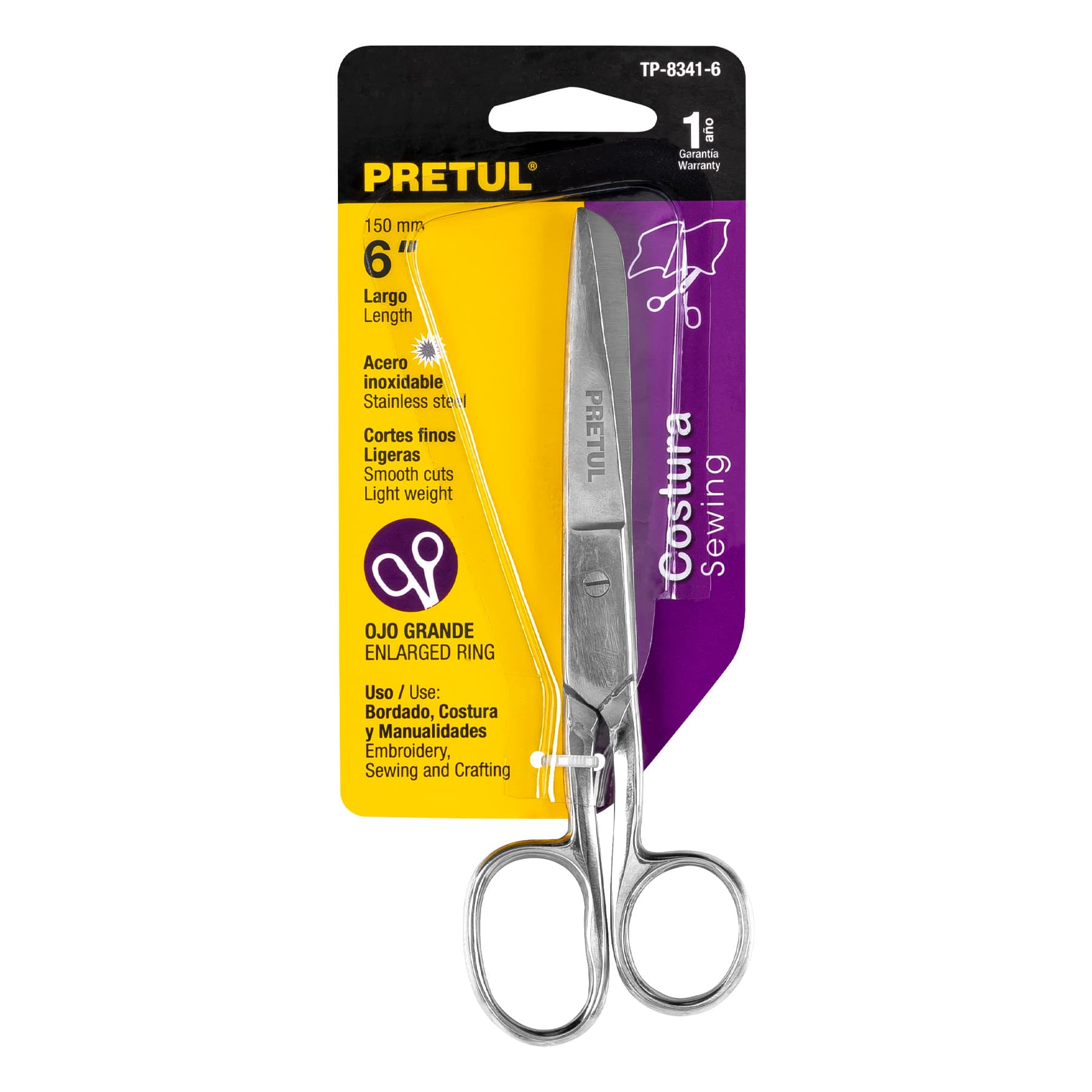 Tijera para costura, 6" ojo grande, Pretul