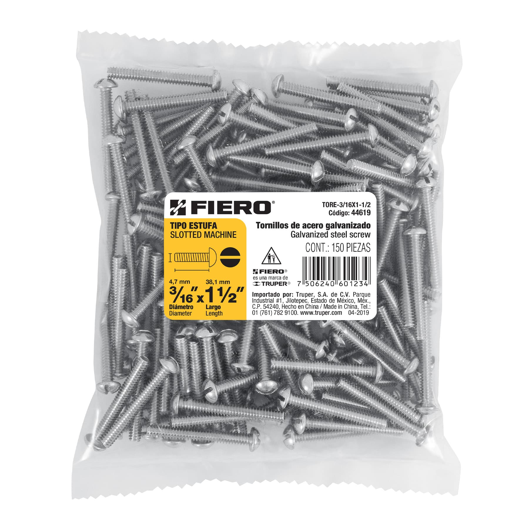 Tornillo acero galvanizado tipo estufa 3/16x1 1/2",150 pzas