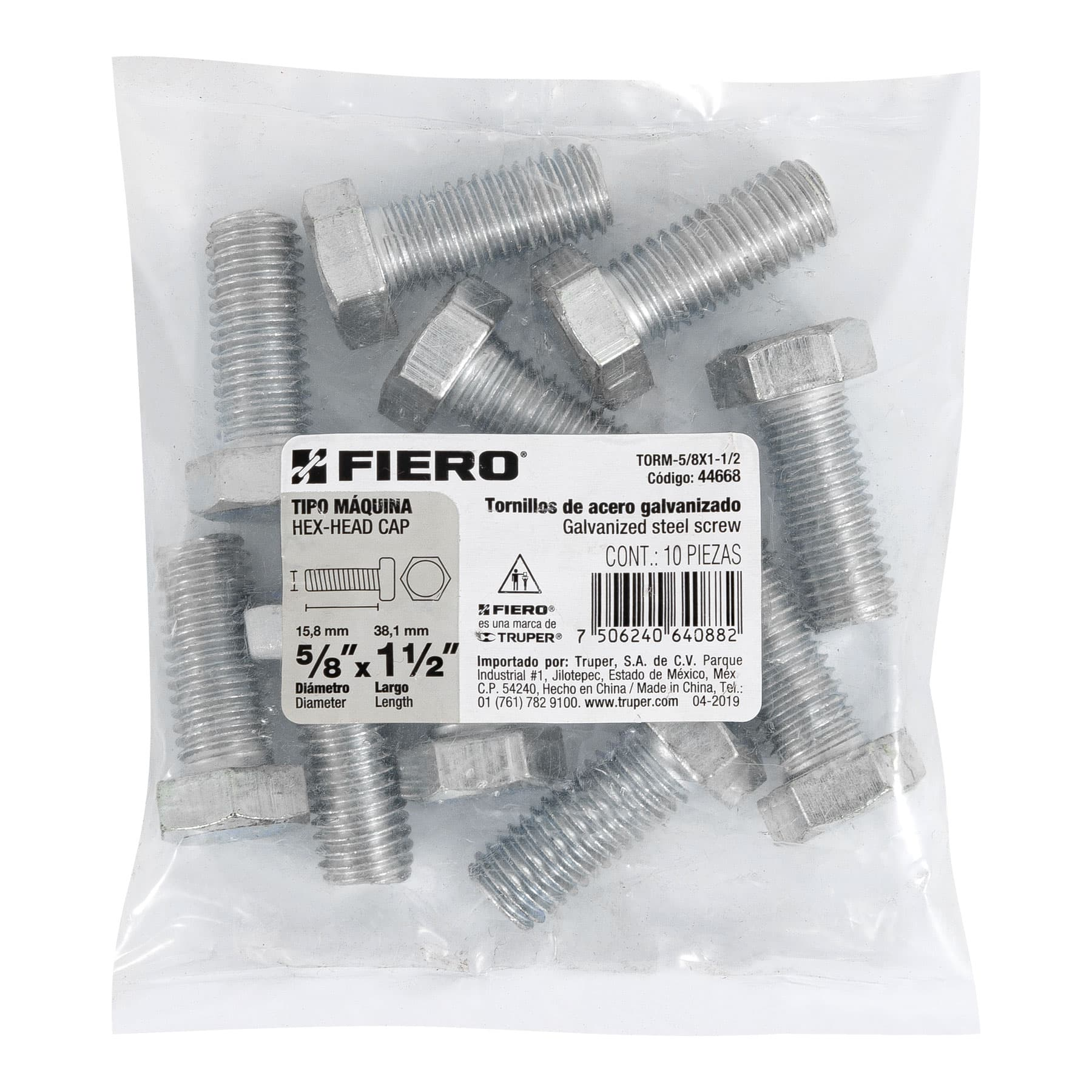 Tornillo acero galvanizado tipo máquina, 5/8X1-1/2", 10 pzas