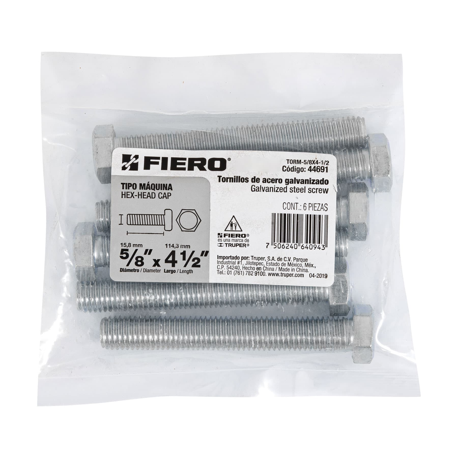 Tornillo acero galvanizado tipo máquina, 5/8X4-1/2", 6 pzas