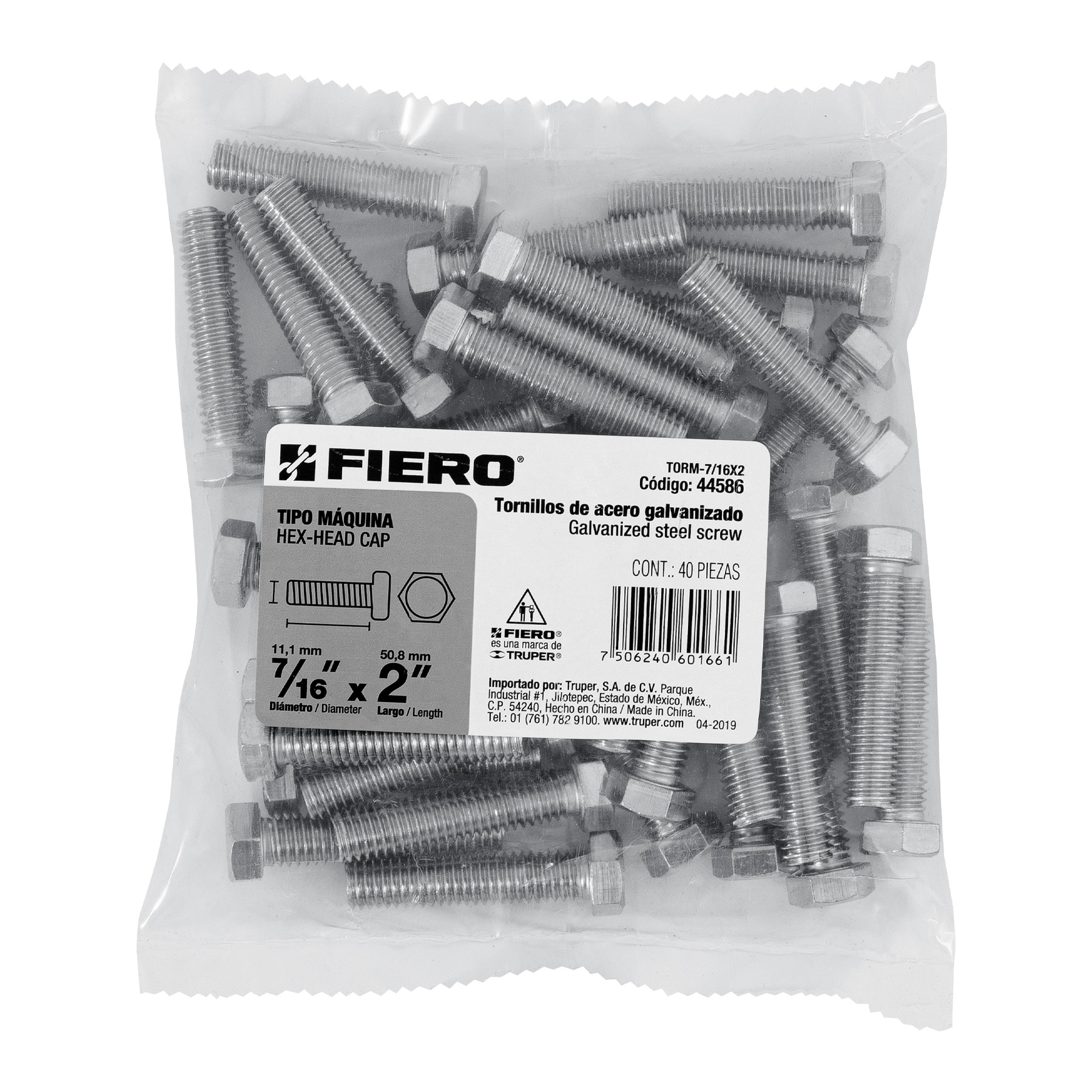 Tornillo acero galvanizado tipo máquina 7/16x2", 40 pzas