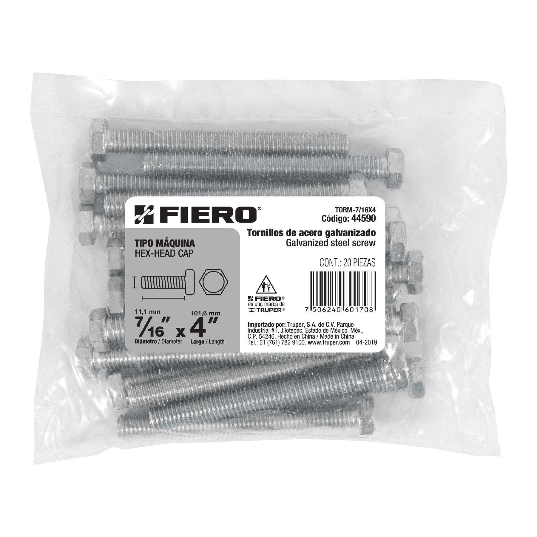 Tornillo acero galvanizado tipo máquina 7/16x4", 20 pzas