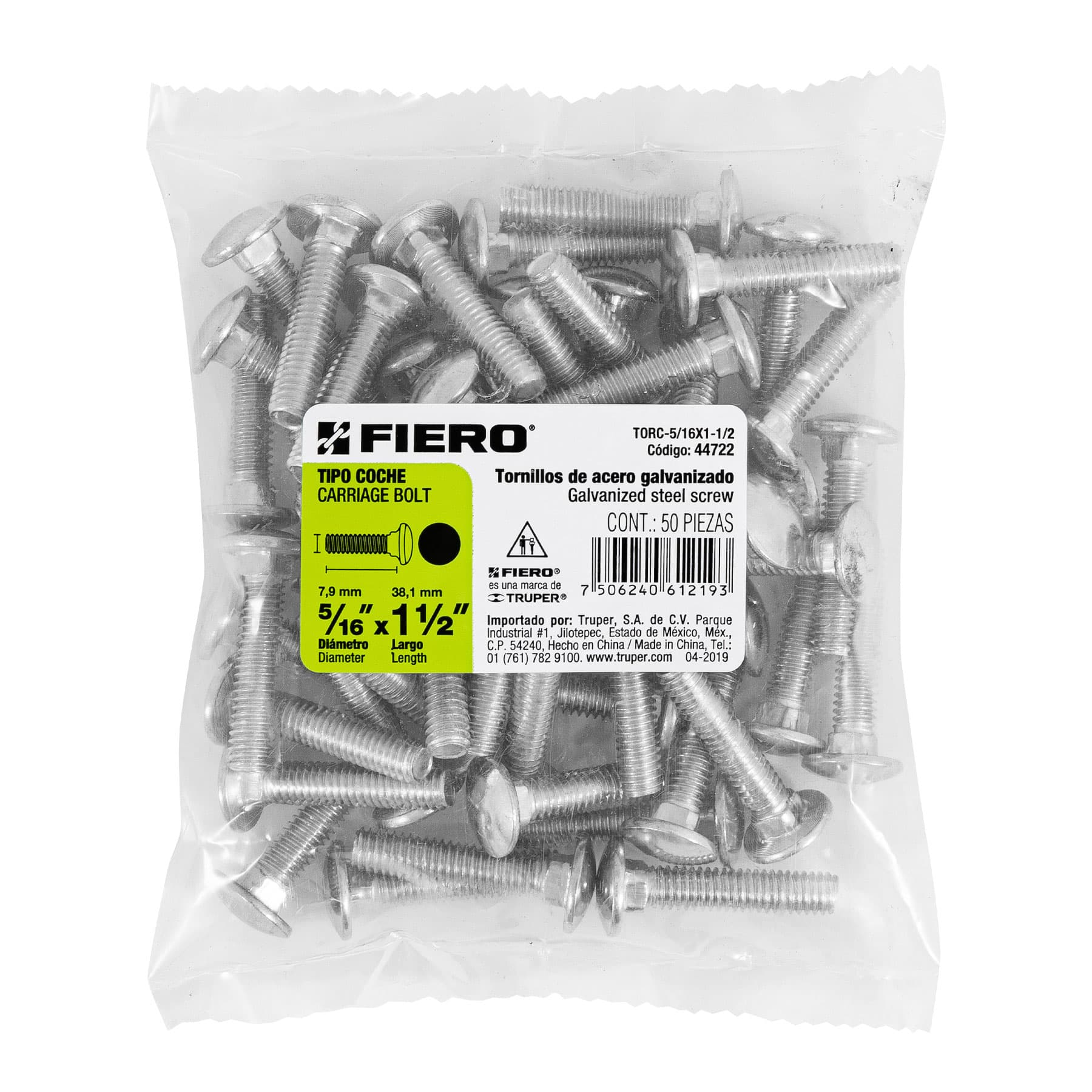 Tornillo tipo coche, galvanizado, 5/16 X 1-1/2", 50 piezas